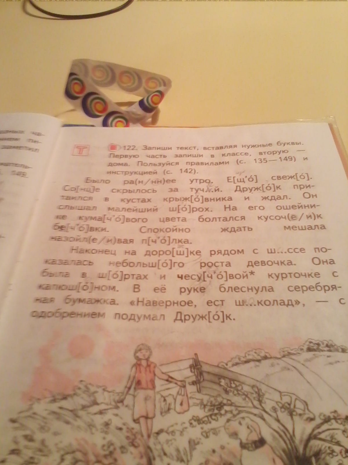 Наконец на дорожке рядом с шоссе показалась небольшого роста девочка. Она была в шортах и чесучовой курточке с капюшоном. В её куртке блеснула серебряная бумажка. "Наверное, ест шоколад", - с одобрением подумал Дружок.