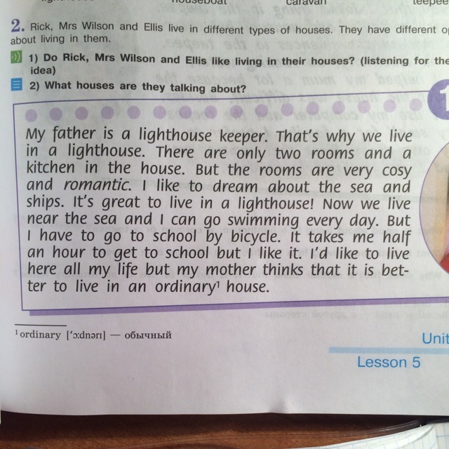 Мой папа маячный хранитель . Поэтому мы и живём в маяке .Есть только 2 комнаты и кухня в доме. Но комнаты очень уютные и романтичные . Я люблю мечтать о море и кораблях . Это великолепный маяк ! Сейчас мы живем рядом с морем, и я могу пойти поплавать каждый день . Но я езжу в школу на велосипеде. У меня есть полчаса чтобы до школы но мне нравится . Я люблю жить моей жизнью , но моя мама думает лучше жить в обычном доме .