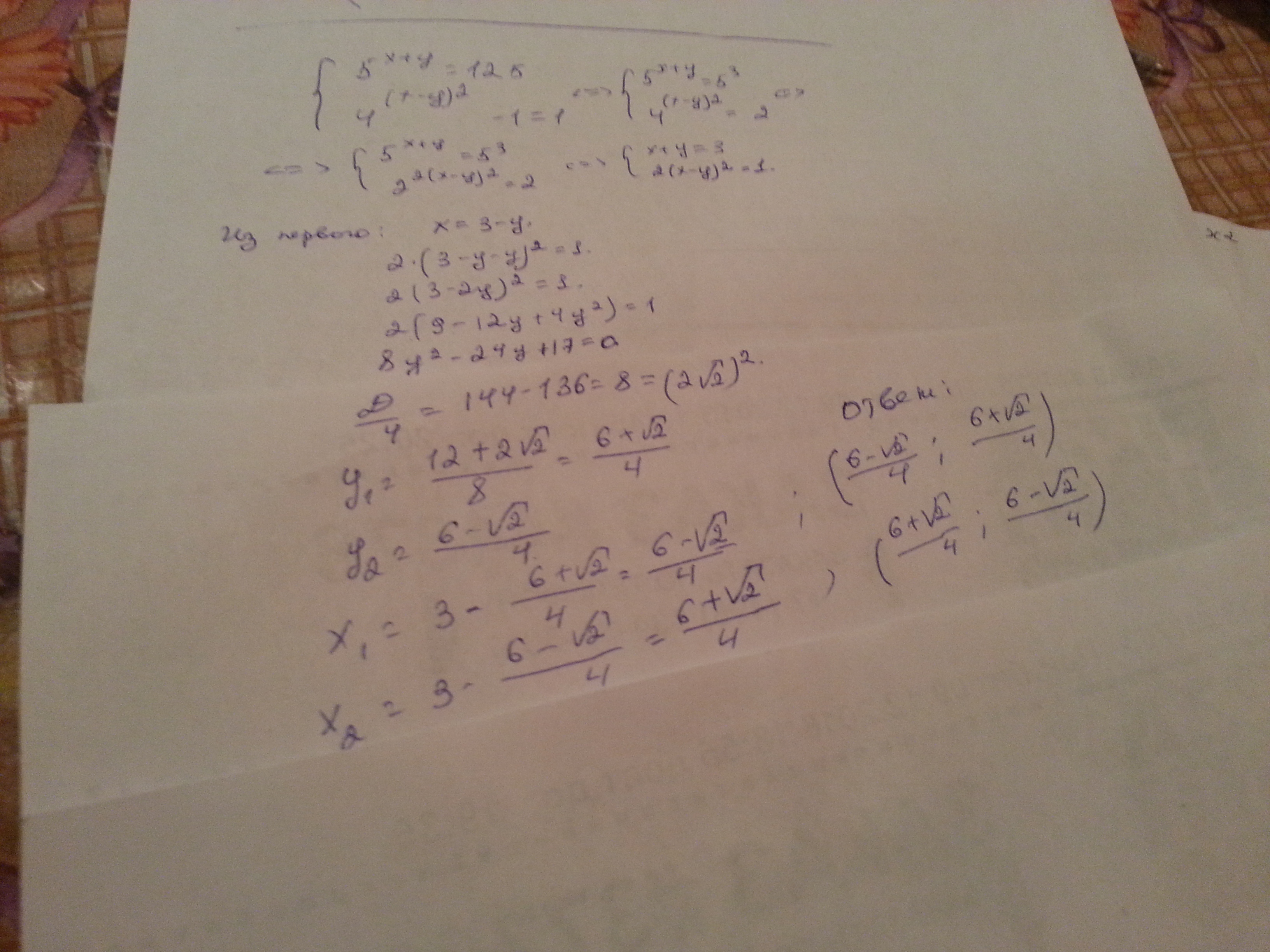 4^(x-y)²-1=1⇒2^2(x-y)²=2⇒2(x-y)²=1