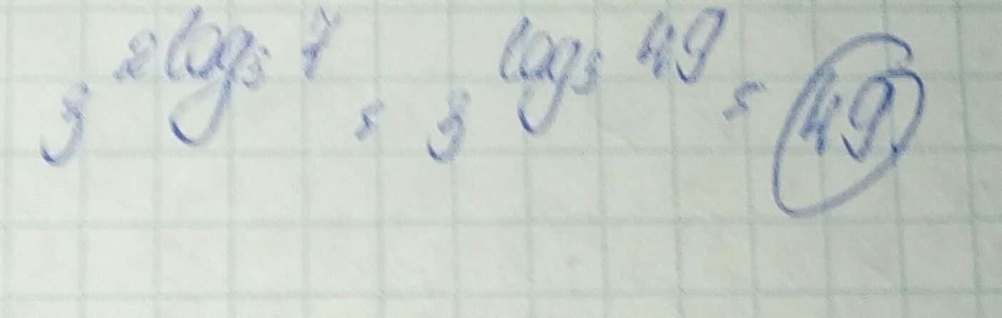 3^(2*log3 7) =(3^ log3 7)^2 =7^2=49 ответ 49
