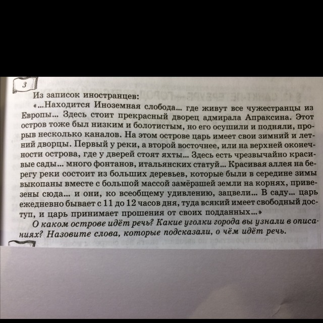 О каком острове идет речь? Какие уголки города вы узнали в описаниях? Назовите слова, которые подсказали, о чем идет речь.