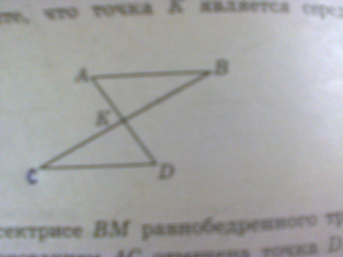 на рисунке отрезки AB и CD параллельны и равны.Докажите что точка K является серединой отрезка BC.