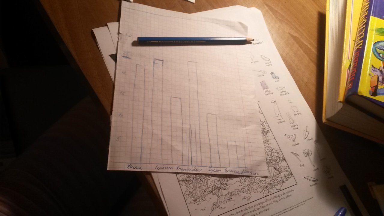 на весь тетрадный лист чертишь столбчатую диаграму, рядом пишешь имена детей вот так: