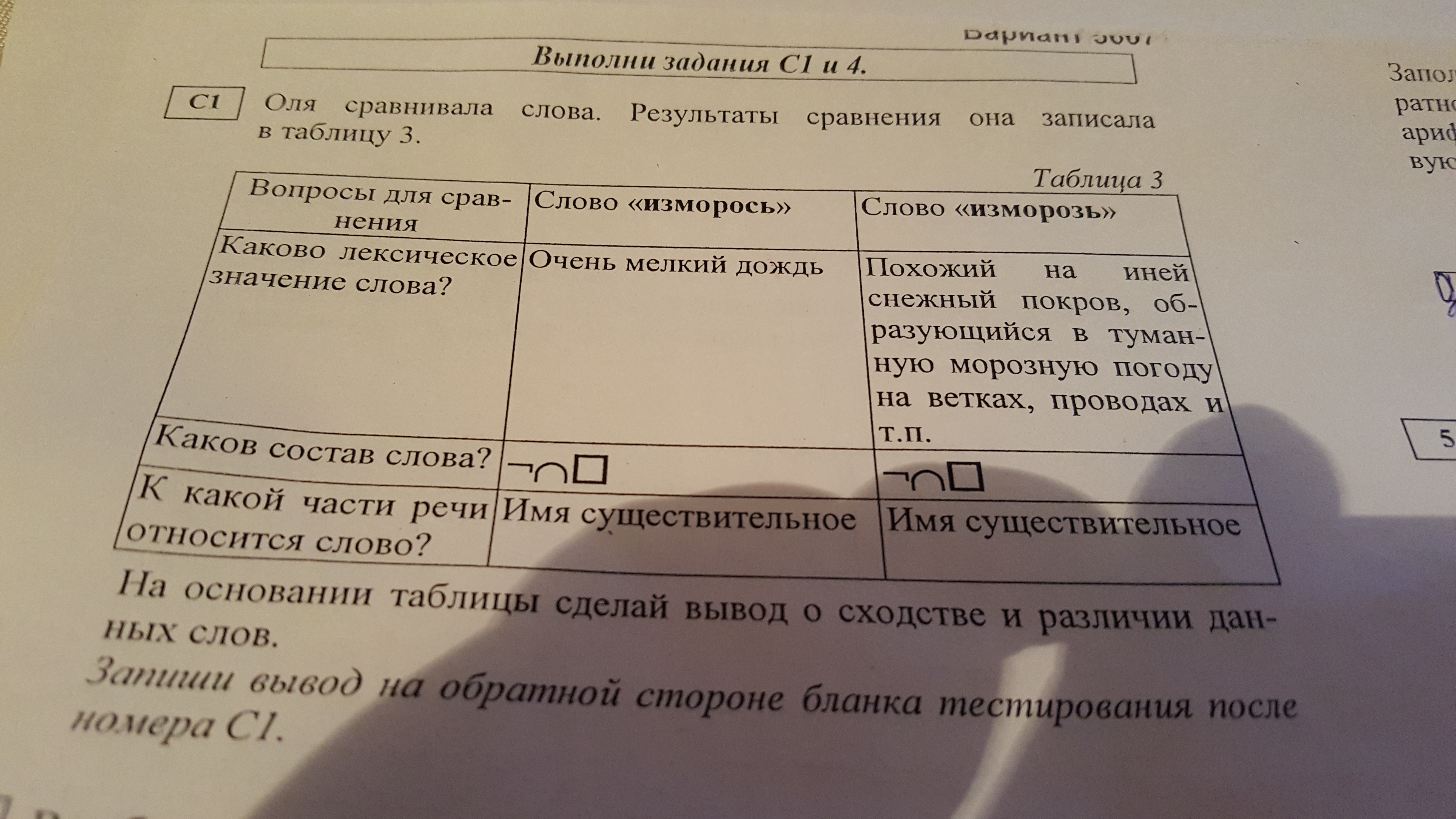 Ну крч там два слова изморось и изморозь, они отличаются по значению слова, изморось-это мелкий дождь, а изморозь покров похожий на иней на ели, проводах и т д
