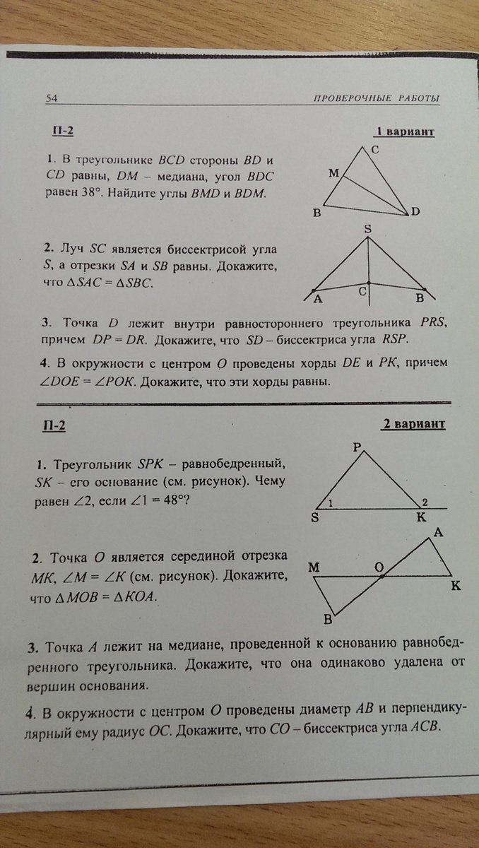 2. Треугольник SPK - равнобедренный, SK его основание (см. рисунок). Чему равен угол 2, если угол 1= 48 градусам.
