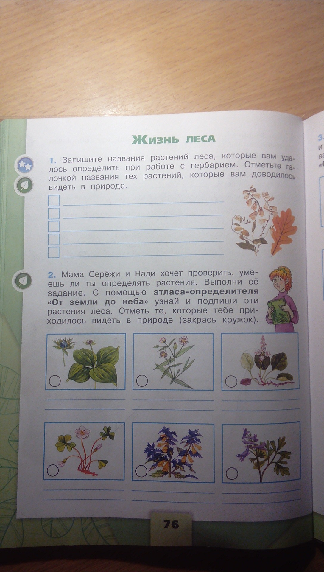 задание по окружающему миру Плешаков 4 класс Запиши названия растений леса которые вам удалось определить при работе с гербарием отметьте галочкой названия Тех растений которые вам доводилось видеть в природе .