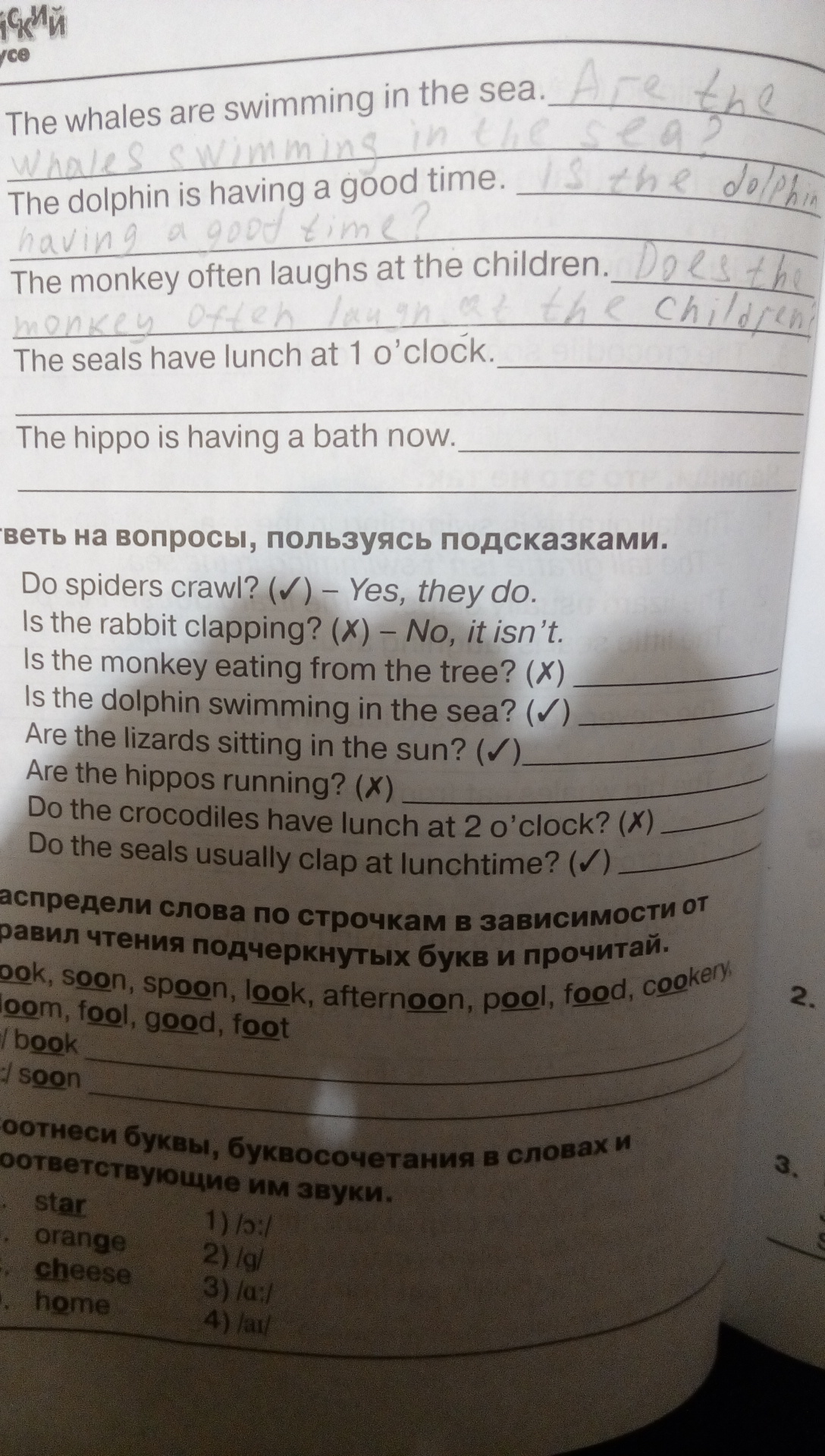 Ответь на вопросы, пользуясь подсказками. Is the monkey eating from the tree?