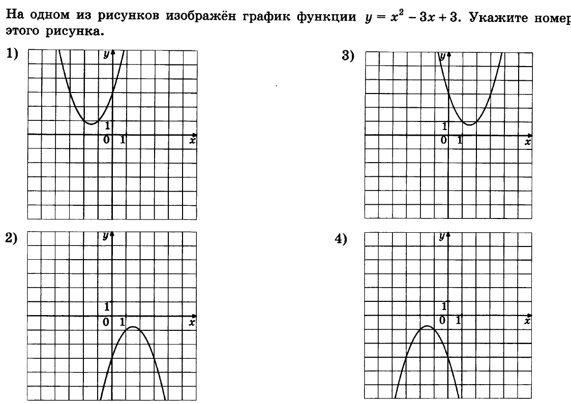 На одном из рисунков изображён график функции у = х^2 - 3х + 3. Укажите номер этого рисунка.