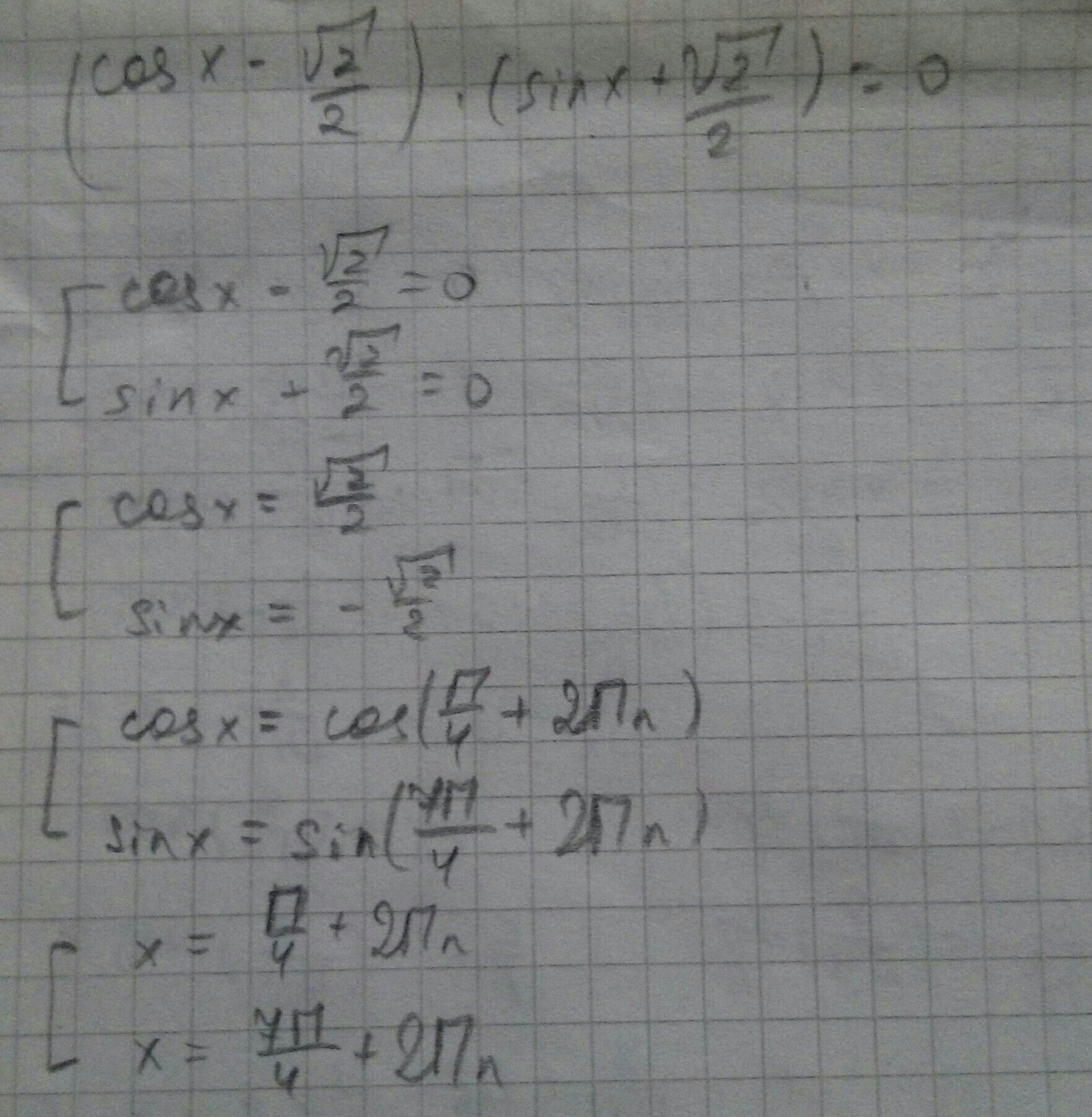 cosx-√2/2)*(sinx+√2/2)=0