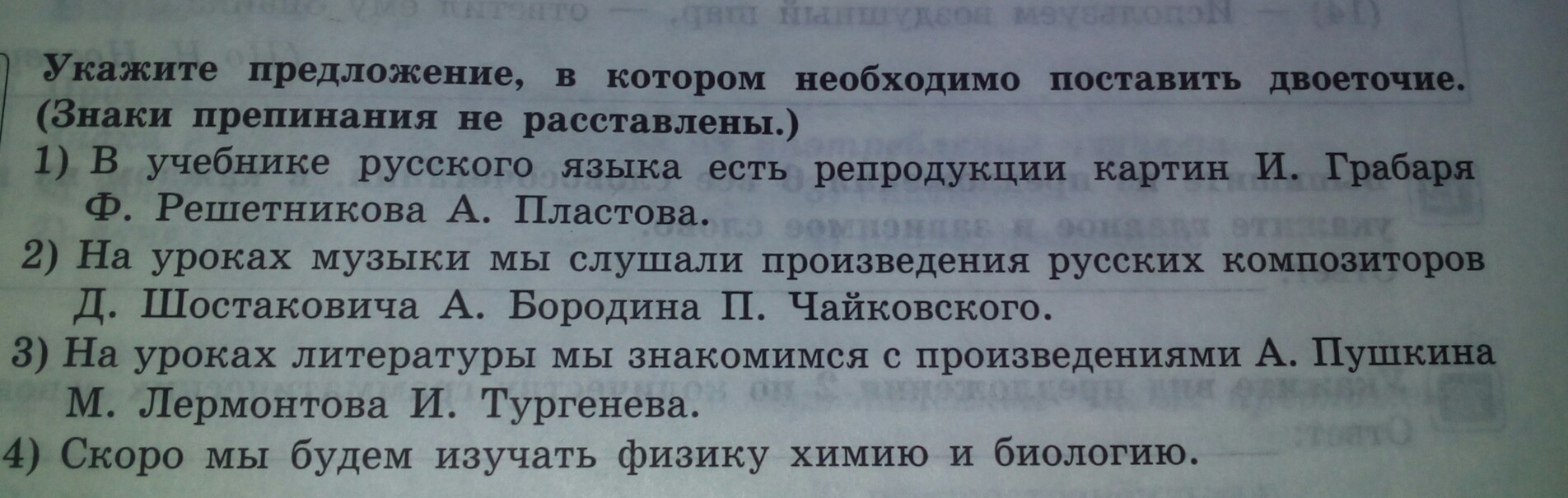двоеточие нужно поставить в предложении№2 после слова композиторов