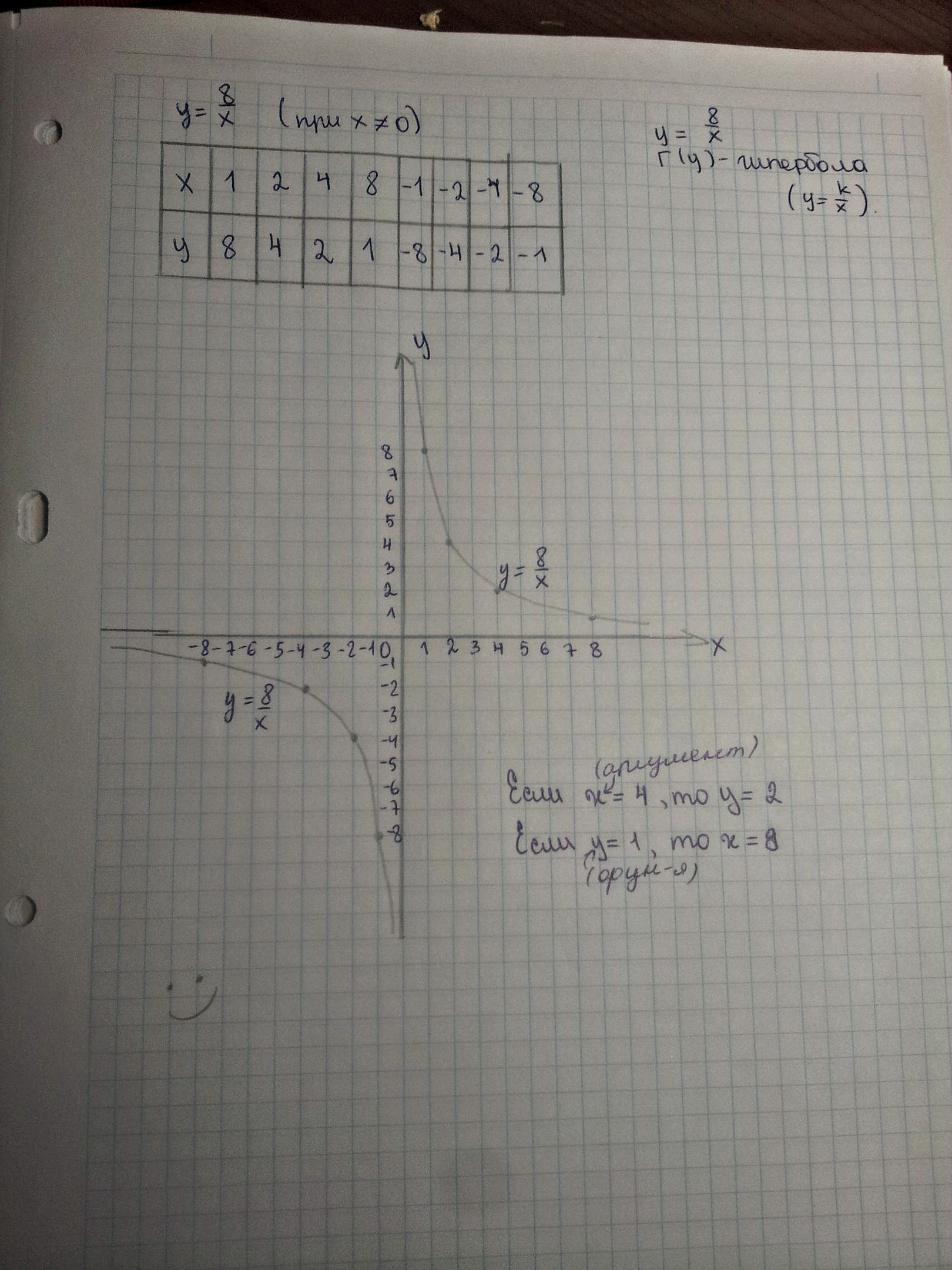 Постройте график функции y=8/x. Пользуясь графиком, найдите :