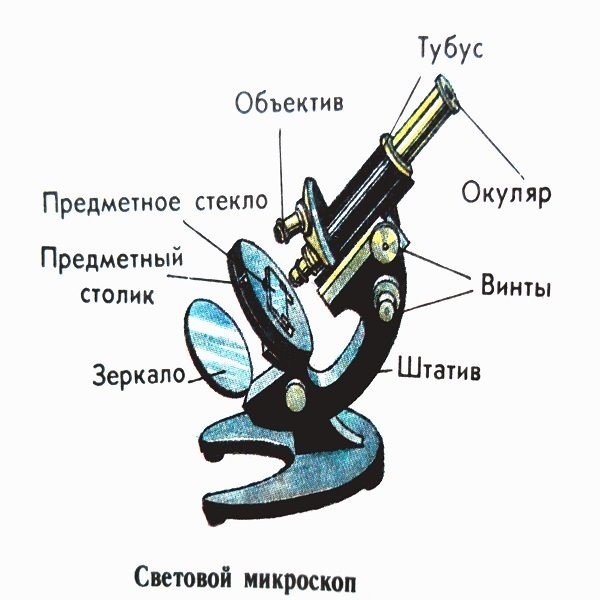 4 Школьный световой микроскоп. Назовите составные части и укажите их значение.