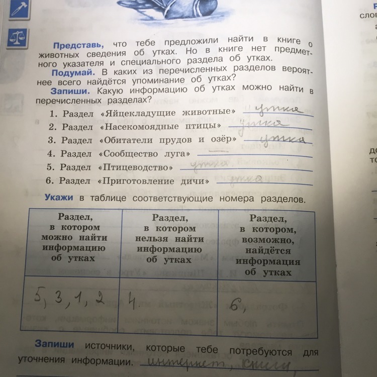 Раздел, в котором возможно найдётся информация об утках: 4, 6.