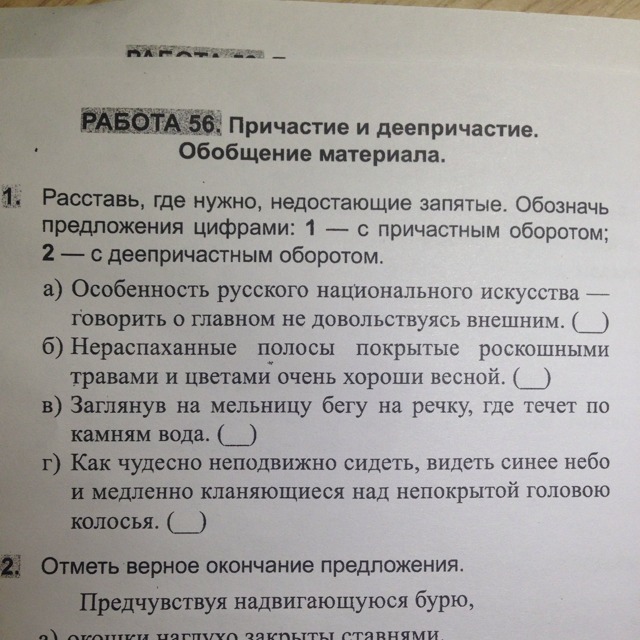 Г) Как чудесно неподвижно сидеть, видеть синее небо и медленно кланяющиеся над непокрытой головою колосья. (Прич)