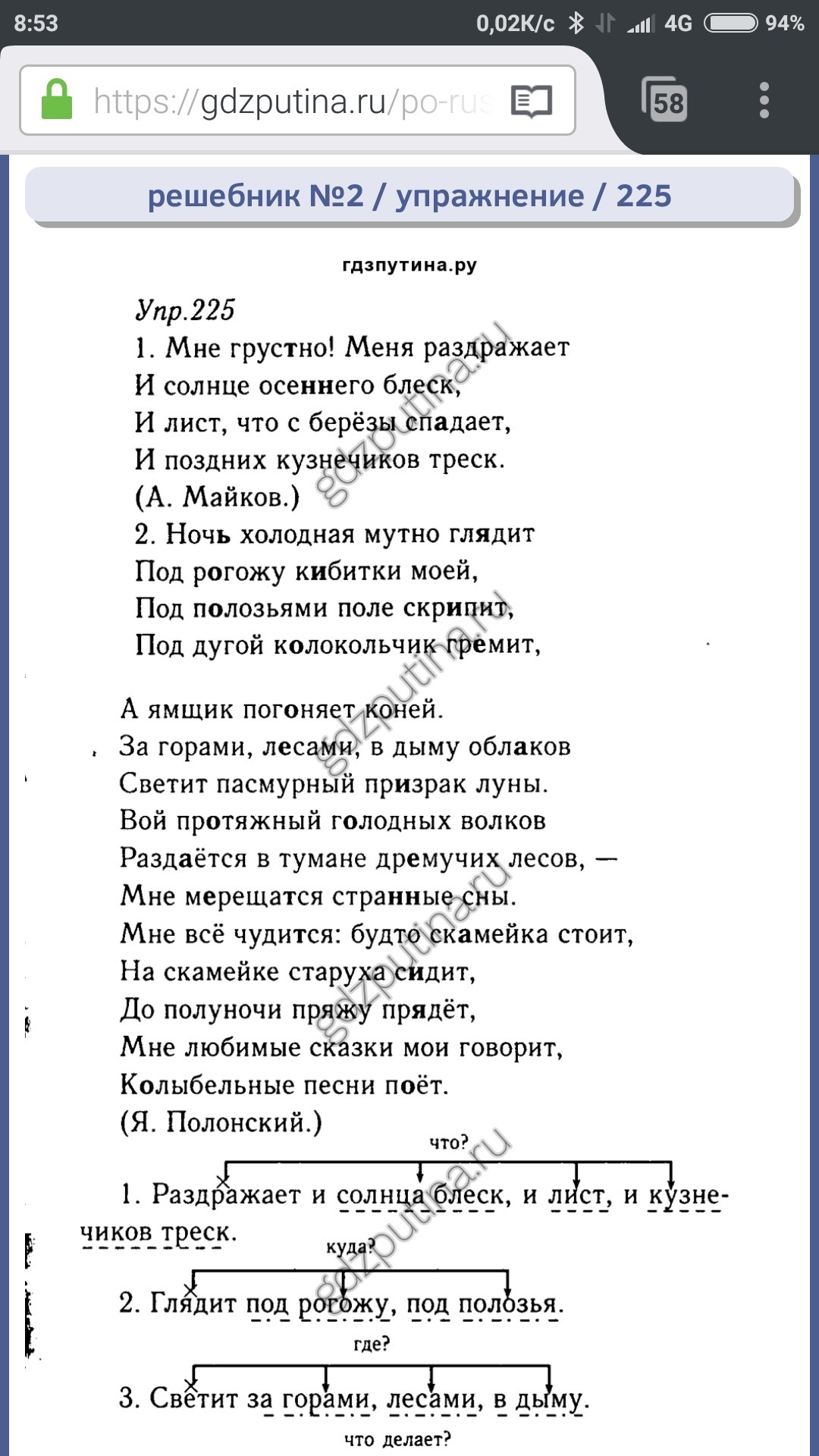 под полозьями, под дугой - одн. дополнения