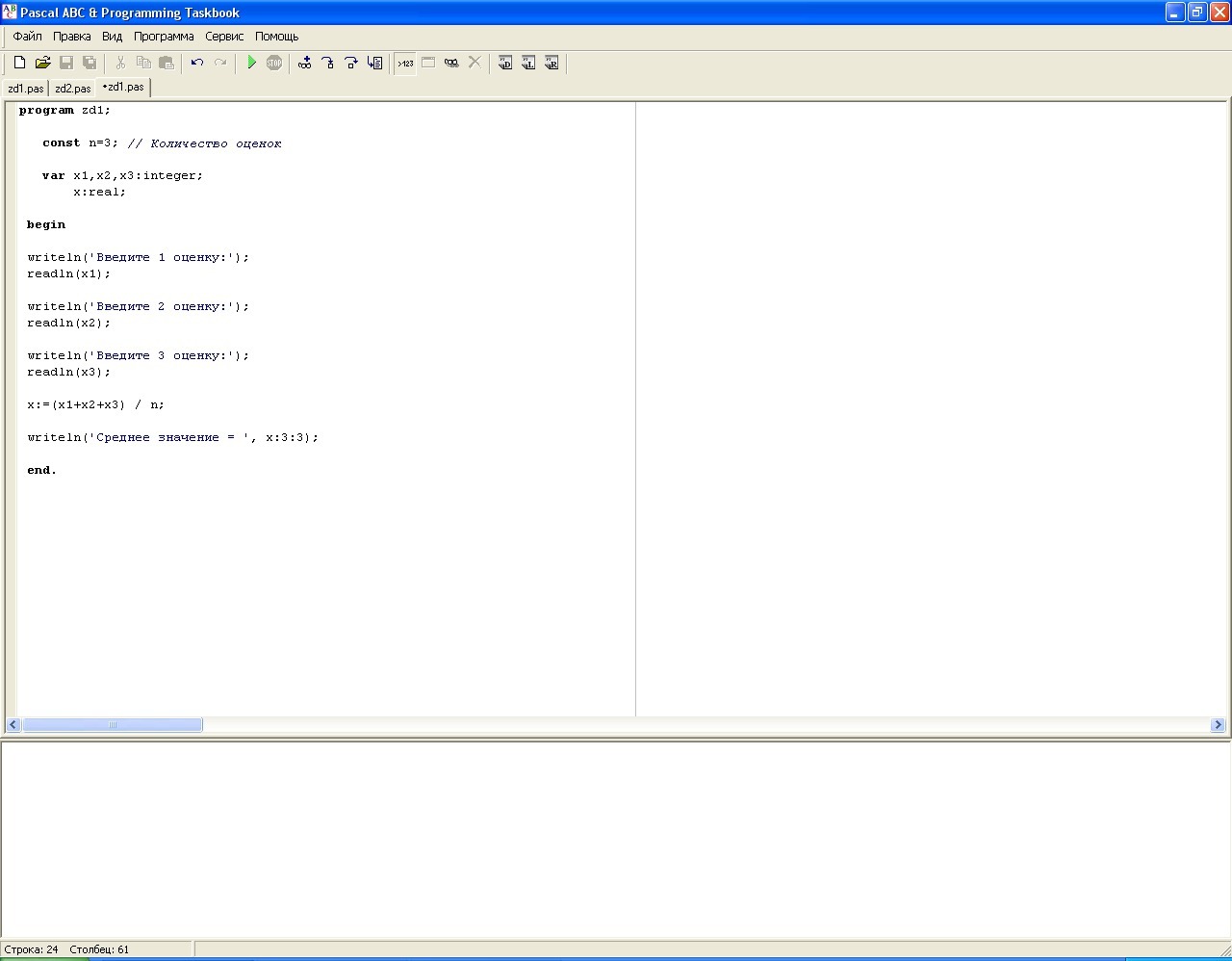 Напишите алгоритм для вычисления среднего Балларат предметам,если было получено 3 оценки. (Оценки можете придумать сами) это очень срочно.