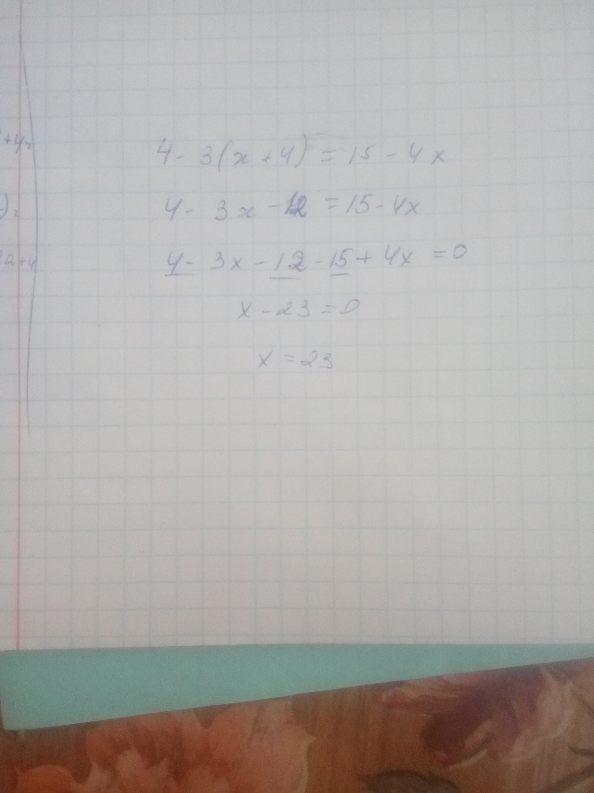 4-3х-12-15+4х=0