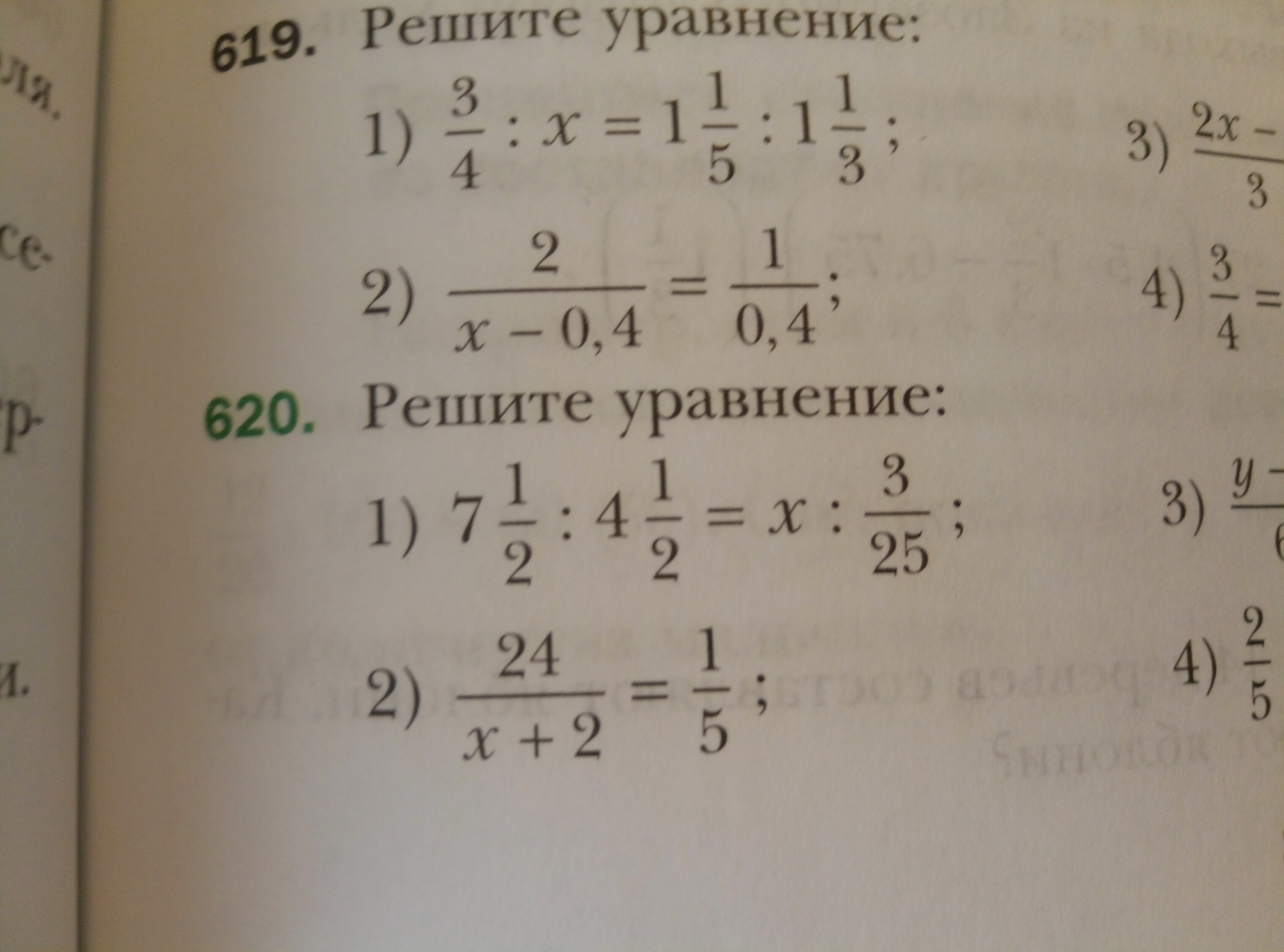 7 - : 4 - = х : -- ;