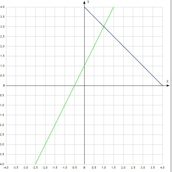 После построения прямых находим точку пересечения. Ее координаты и будут решением этой системы.