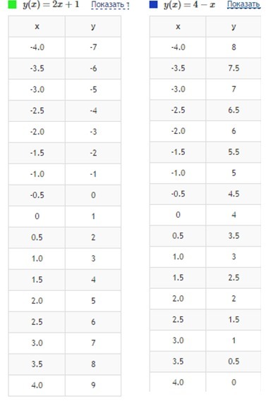 Ниже приведены чертеж и таблицы, по которым построены прямые на чертеже.