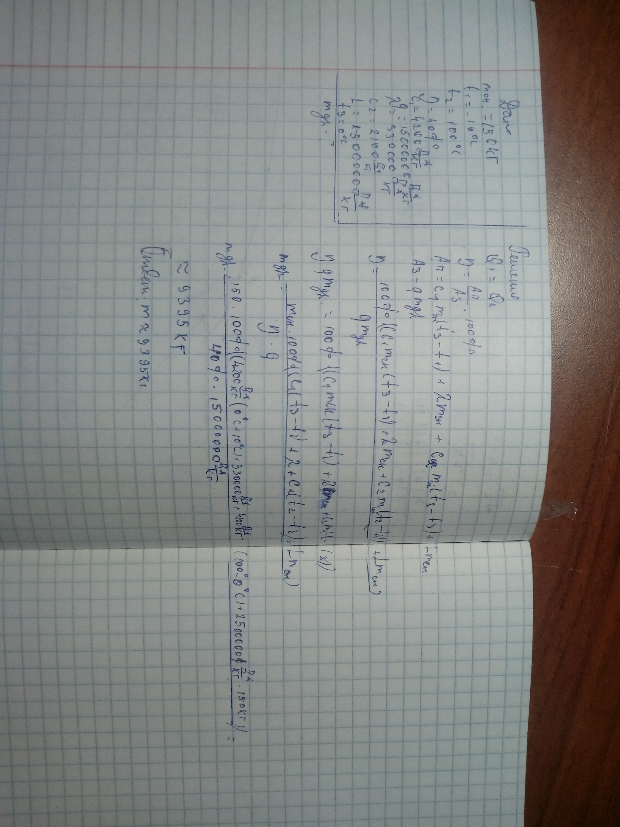 Q общее=Q1+Qплав+Q2+Qпарообр.=сlml*10+λl*ml+ml*cв*100+L*mв=
