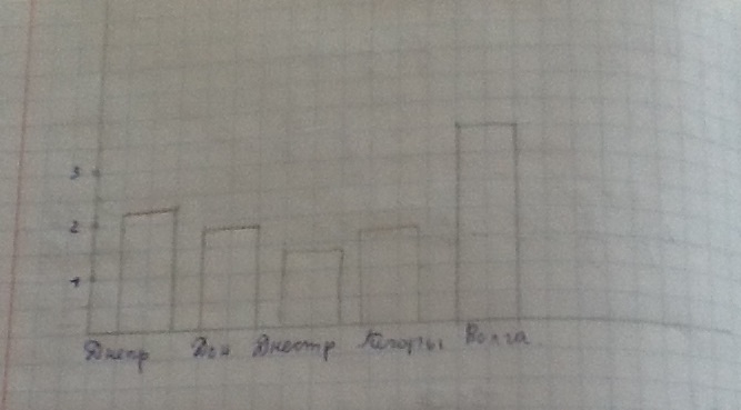 Постройте столбчатую диаграмму по следующим данным: длина Днепра 2.2 тыс. км, Дона 1.9 тыс. км . Днестра 1.4 тыс. км Печоры 1.8 тыс. км Волги 3.5мтыс. км