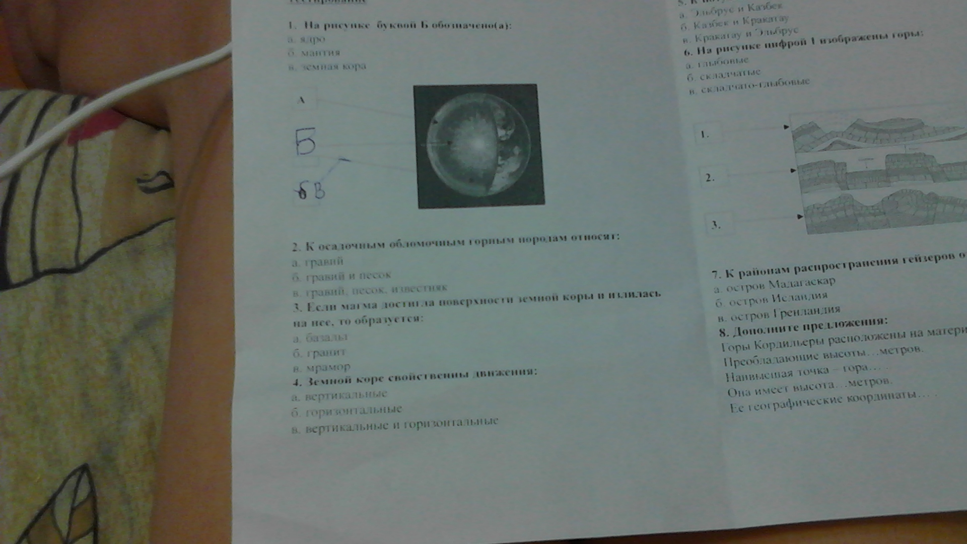 1 мантия 2 гравий и песок 3 базальт 4 вертикальные
