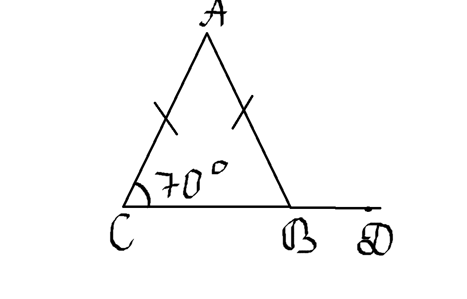 Т к угол С = углу В,то угол СBA=70=> угол ABD=110 (смежный с CBA)