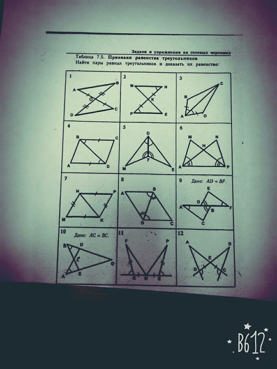 7. Треугольники равны по третьему признаку - по трём сторонам.