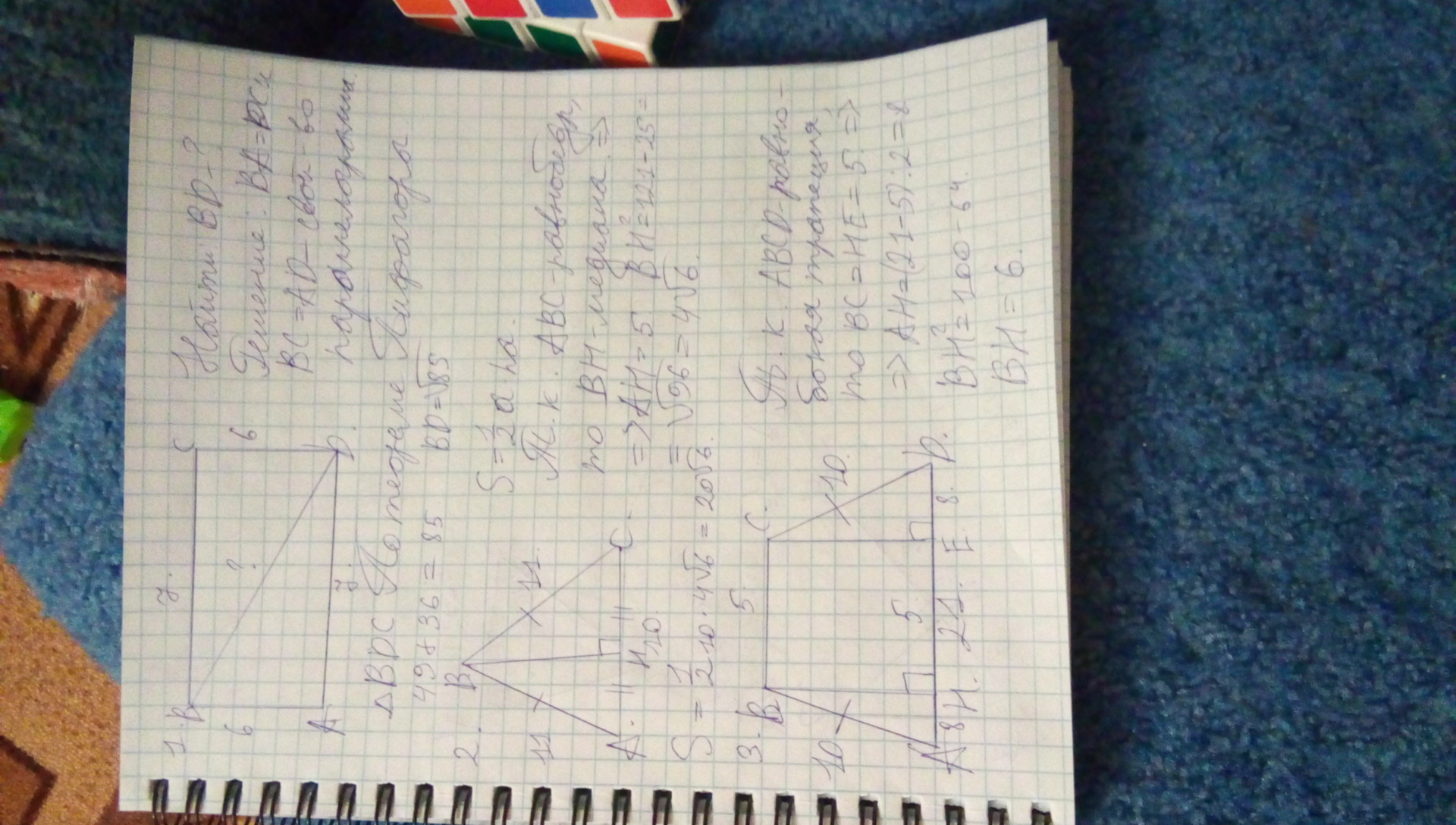 3)найдите высоту равнобоковой трапеции с основаниями 5 и 21 см если боковая сторона равна 10 см