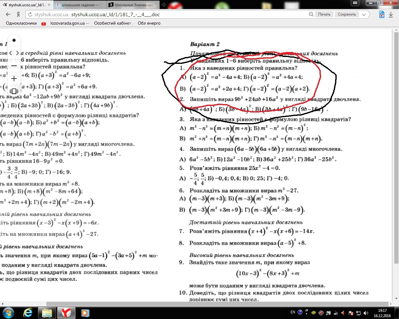 а) (а-2) в квадрате=а в квадрате-4а+4