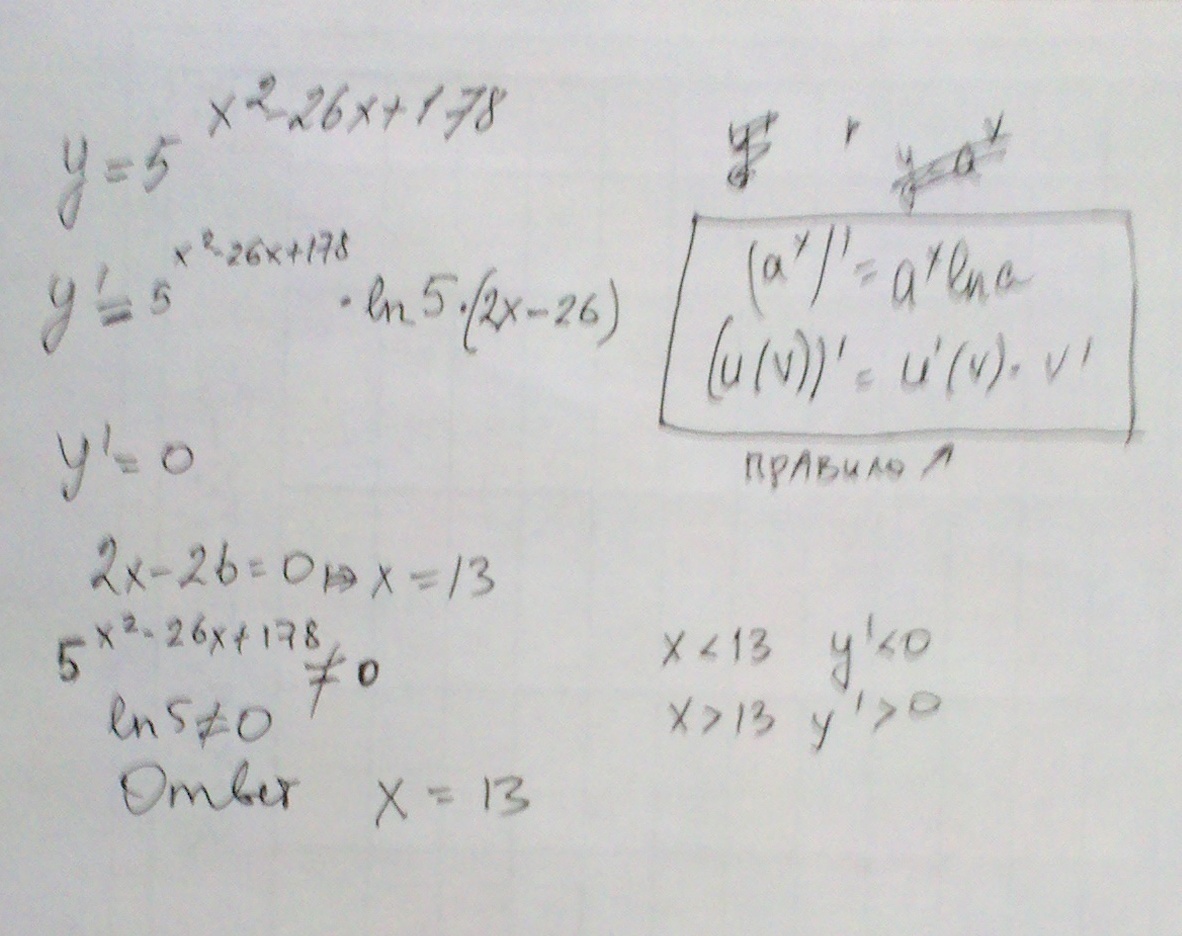 нужно взять производную сложной показательной функции по правилам, я там их написала в рамочках, приравнять нулю. Как-то так. Решение во вложении.
