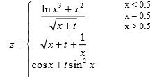 If x<0.5 then f := (ln(x*x*x)+sqr(x))/(sqrt(x+t))