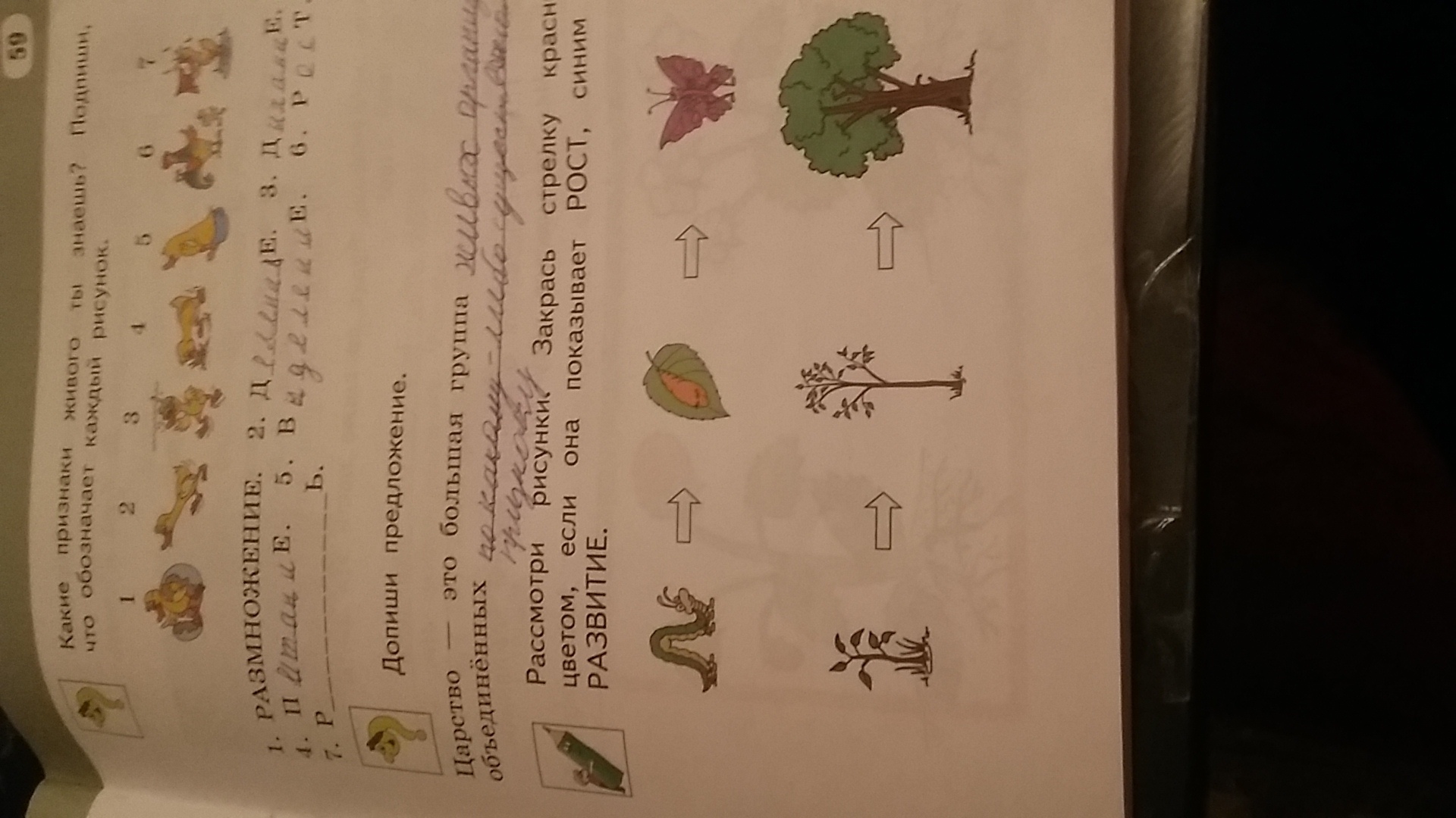 Синим - первое, так как гусеница развивается и становится бабочкой.