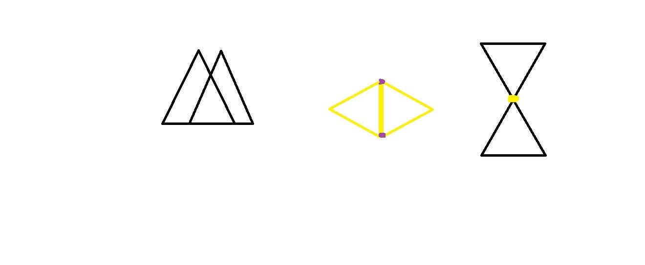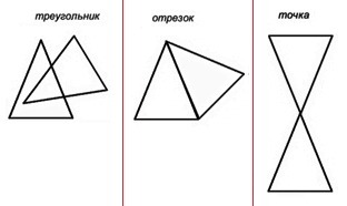 Начертите два треугольника так, чтобы их пересечением :а) был треугольник, б) был отрезок, в) была точка.