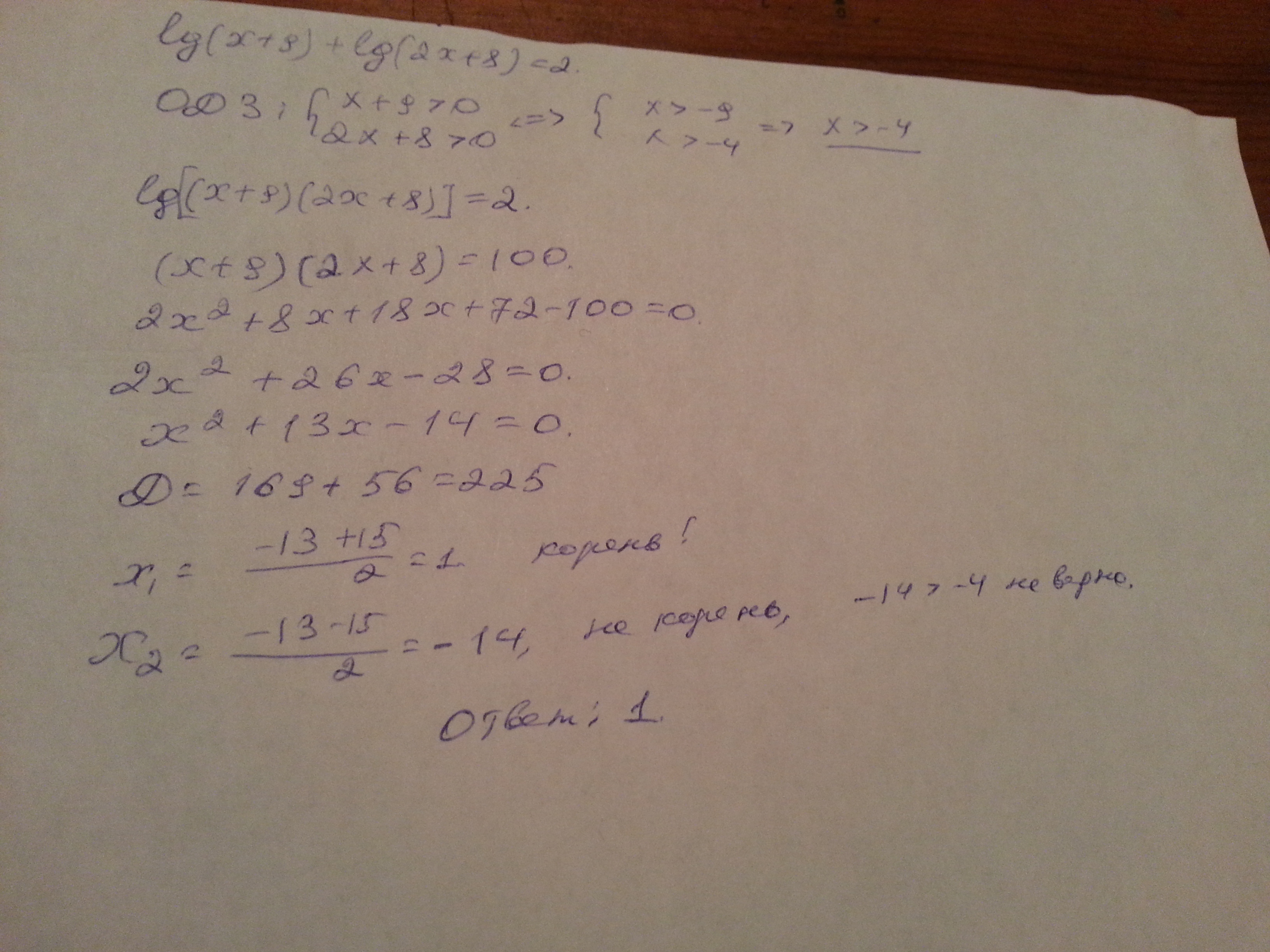 lg(x+9)+lg(2x+8)=2;