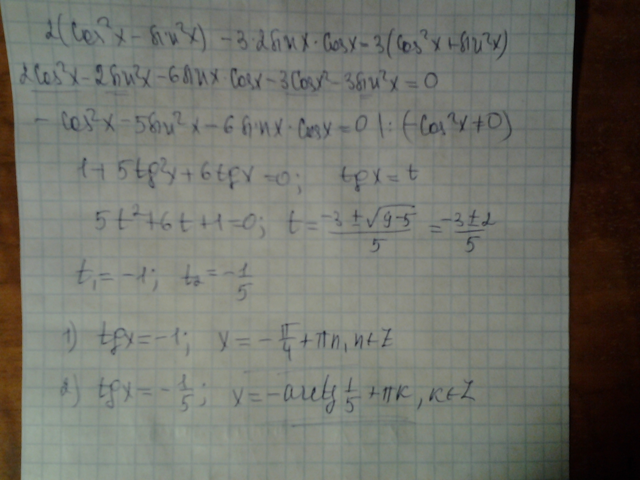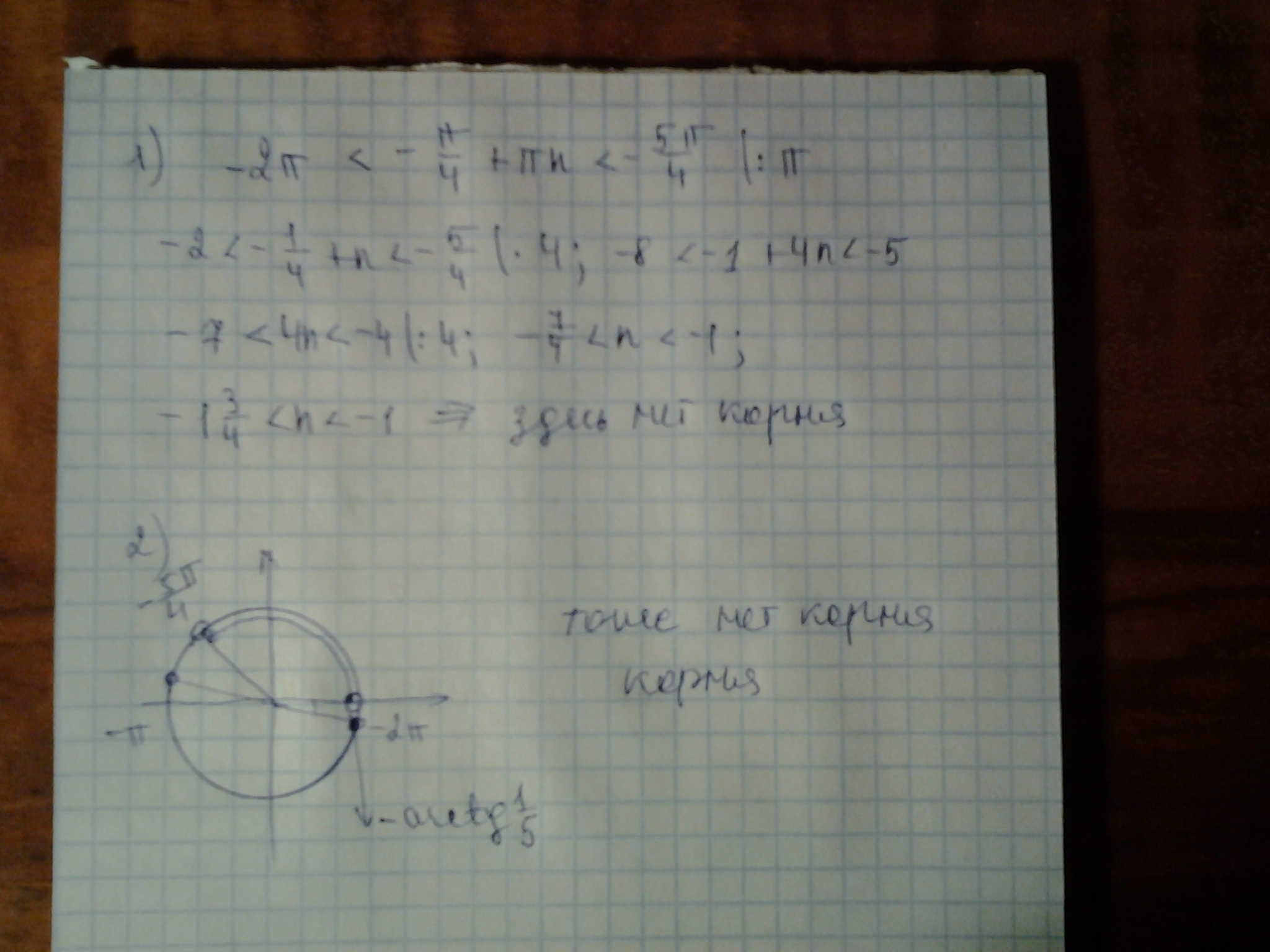 Применены : формулы двойного угла косинуса и синуса, основное тригонометрическое тождество. Получилось, что из обеих серий ни один корень не попадает в данный промежуток.
