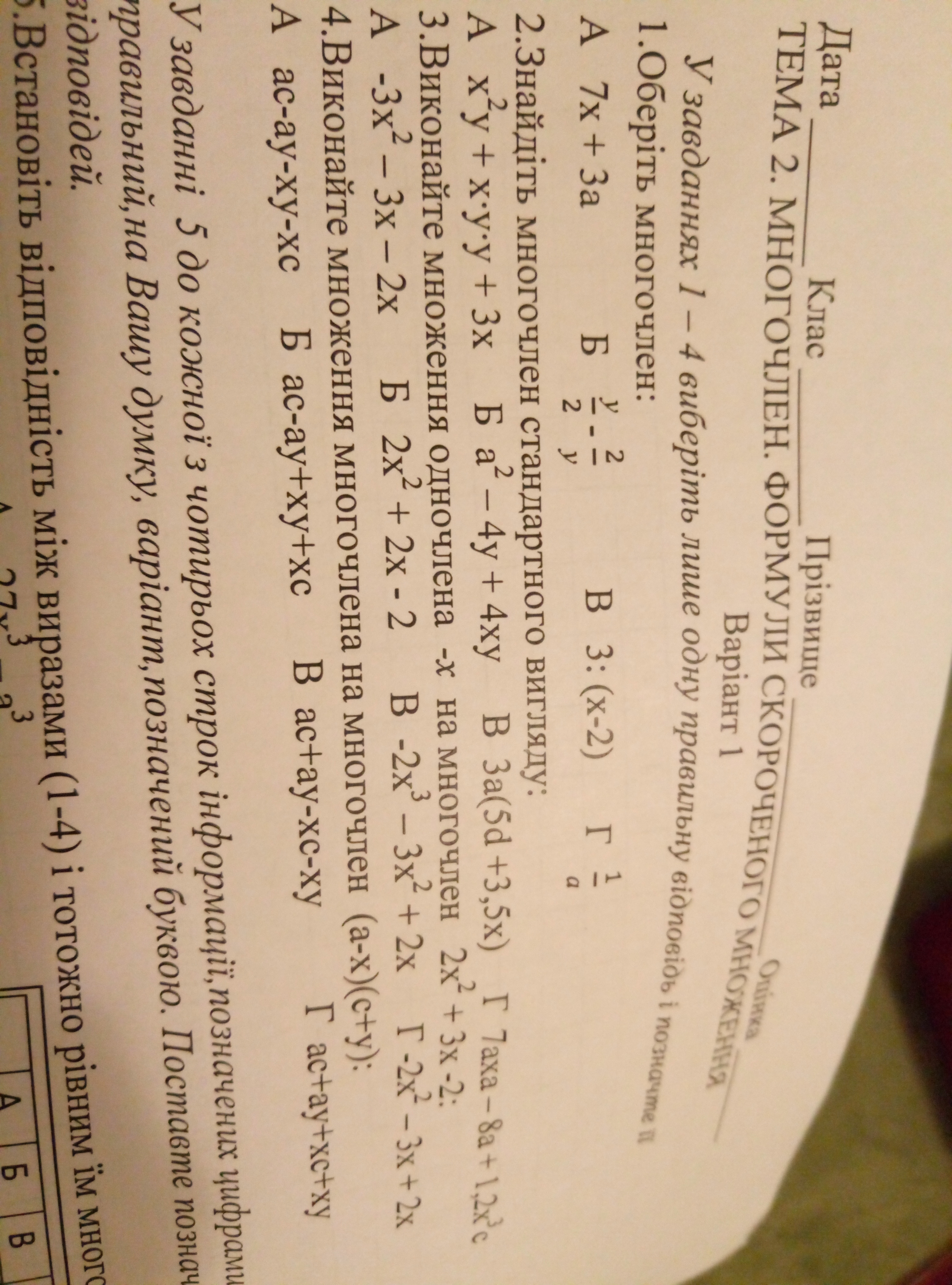 1) A; 2)A; 3) B -x*(2x^2 +3x -2)=-2x^3-3x^2+2x;
