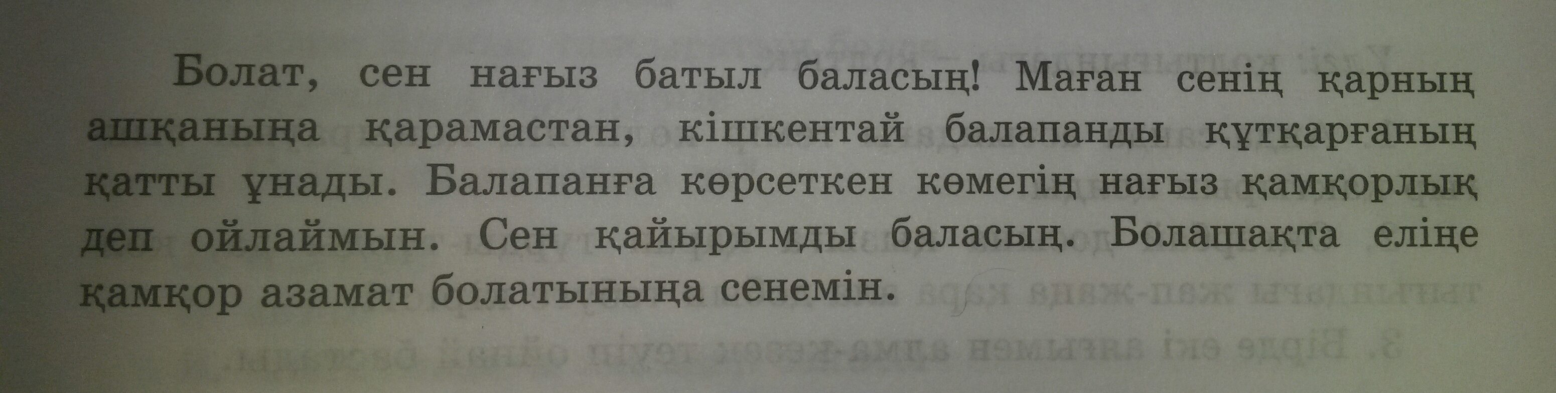 Болат,ты настоящий храбрый мальчик.Мне понравился то ,что ты спас цыпленка ,несмотря на то что ты голодный.Я думаю,твоя помощь цыпленку это настоящая забота.Ты благородный мальчик.Я верю, что в будущем ты будешь заботливым гражданином своей Родины.