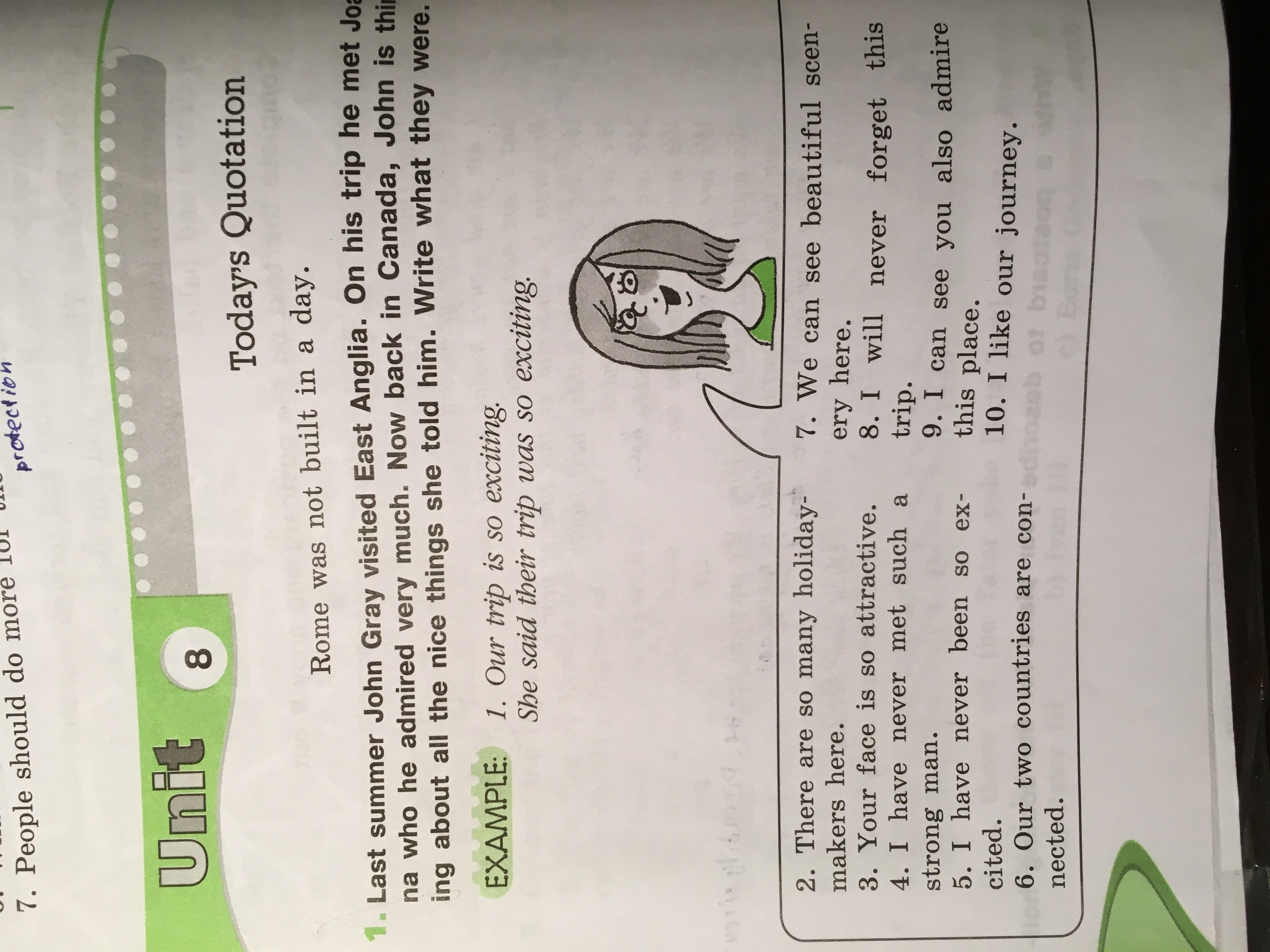 2. She said there were so many holidaymakers 3. She said that my face was so attractive.