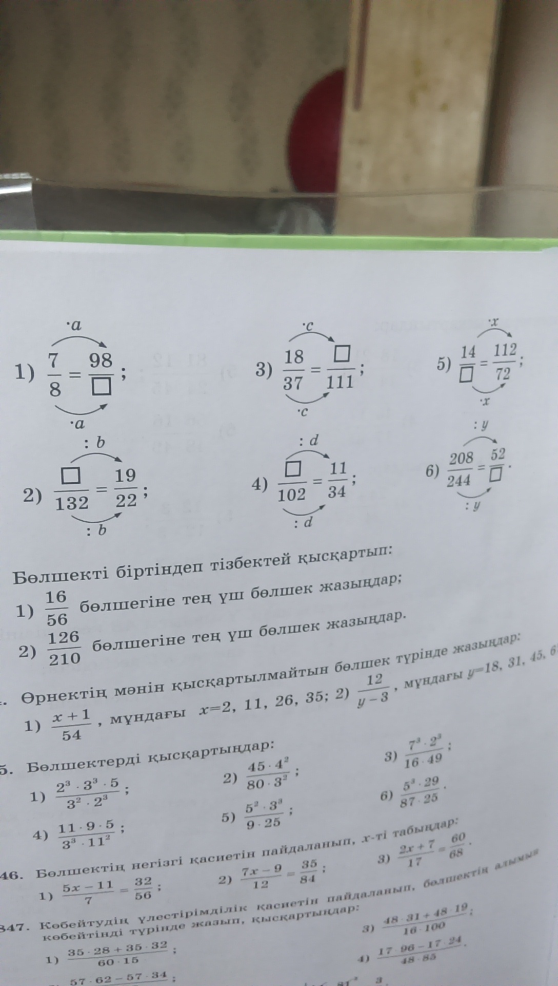 1) 98/112. 2) 114/132. 3) 54/111. 4) 33/102. 5) 14/9. 6) 52/61