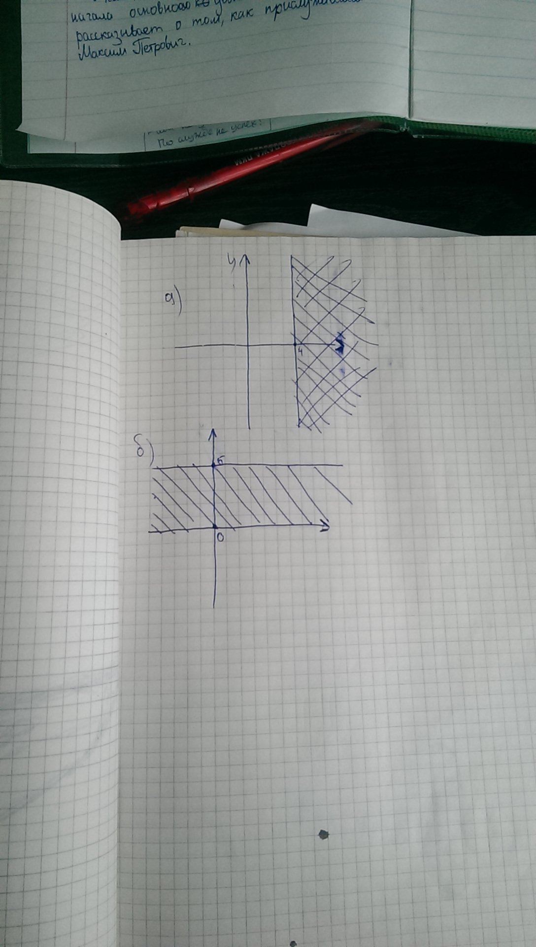 Изобразите на координатной плоскости множество точек , координаты которых удовлетворяет условию:а)x≥4; б) 0≤y≤5 заранее спасибо и если можно с рисунком