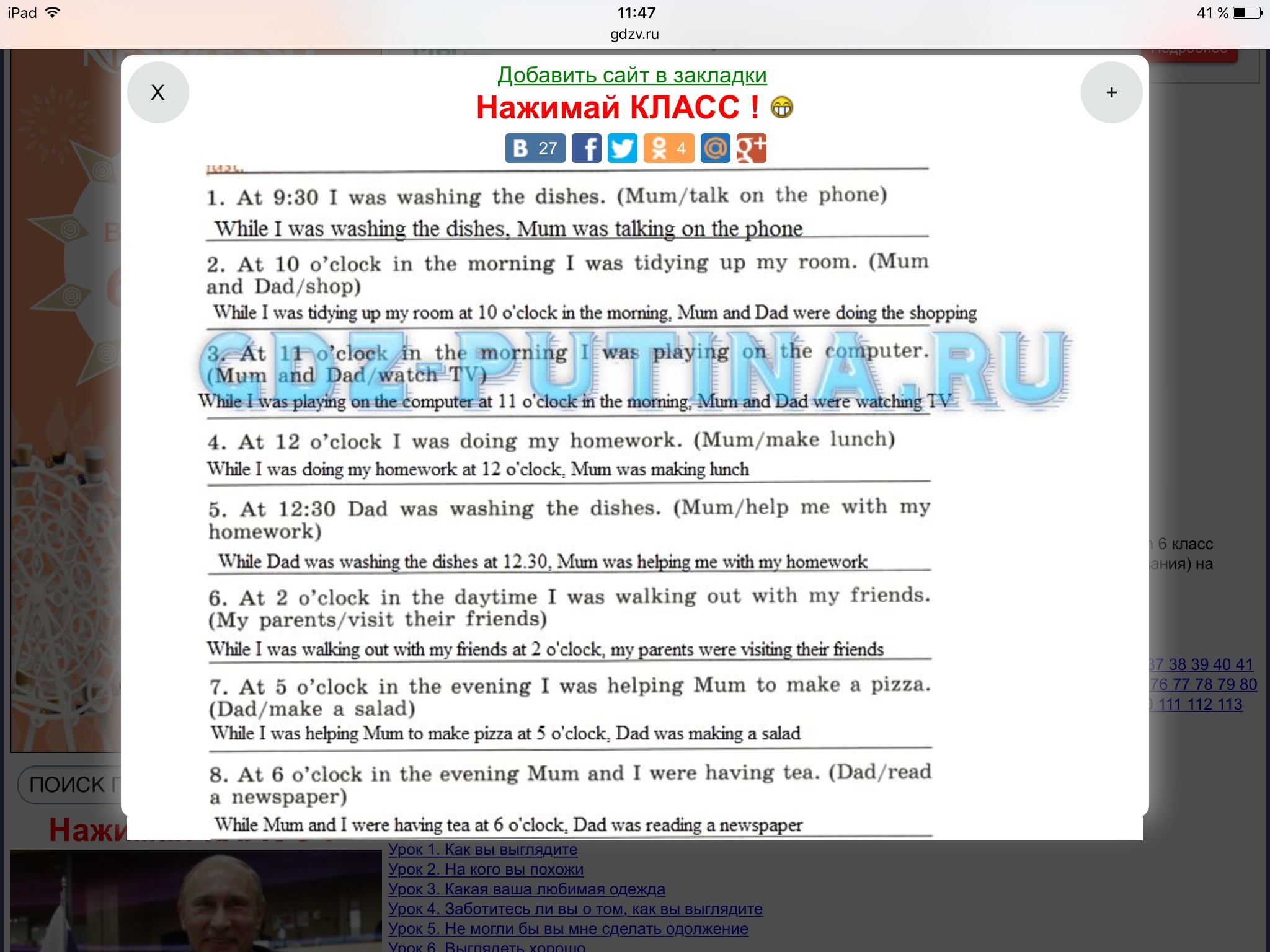 1. В 9:30 я мыл посуду (Мама/разговаривать по телефону)