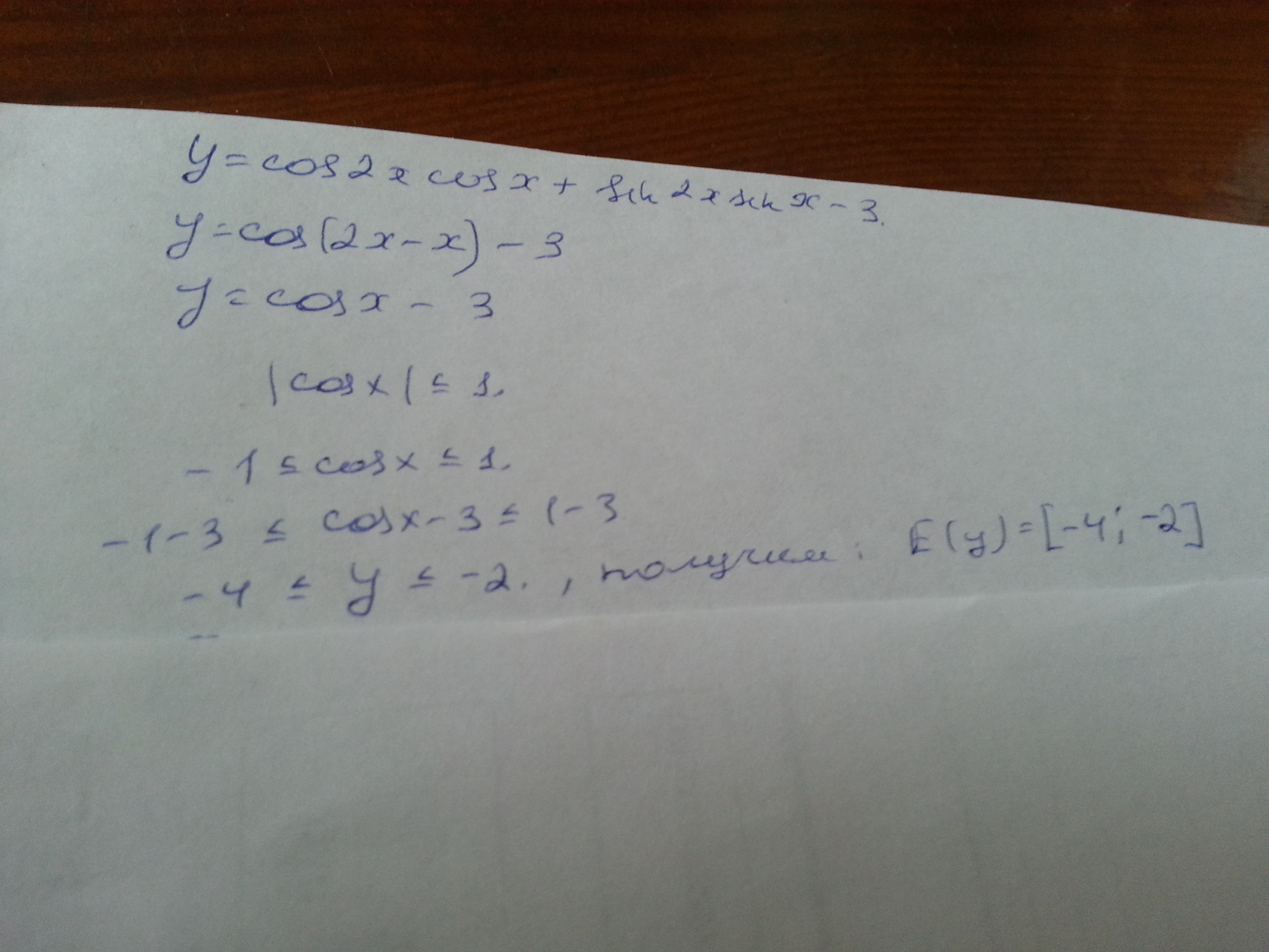 Нужно найти множество значений функции у=cos2x*cosx+sin2x*sinx-3