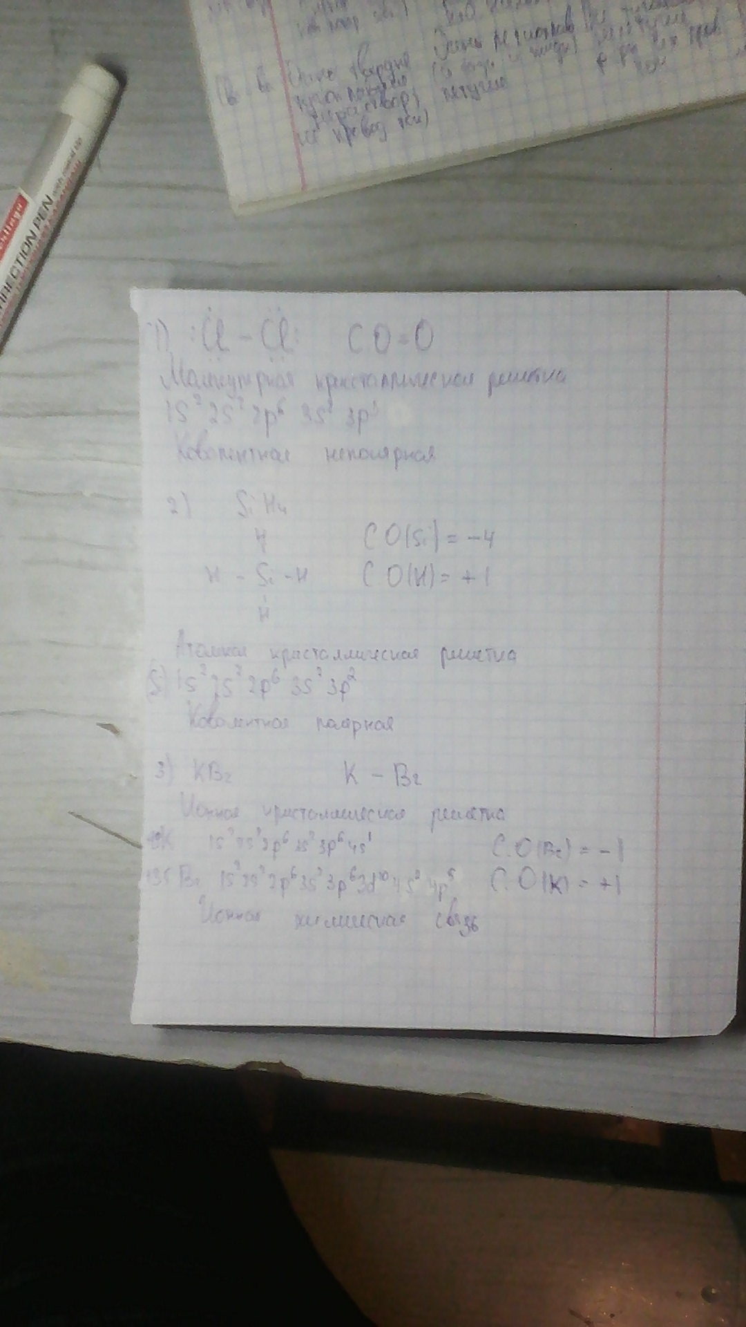 Написать структурные и Электронные формулы, Степени окисления, тип химической связи, тип кристаллическая решётка для соединения, формулы которых: CI2, SiH4, KBr