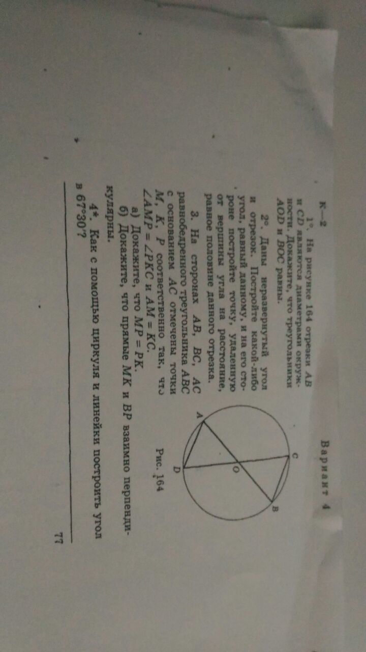 Так как середина окружности является серединой отрезков аб и сд и углы аод и бос равны (вертикальные) ьо по двум сторонам и углу между ними они равны всё что я знаю)