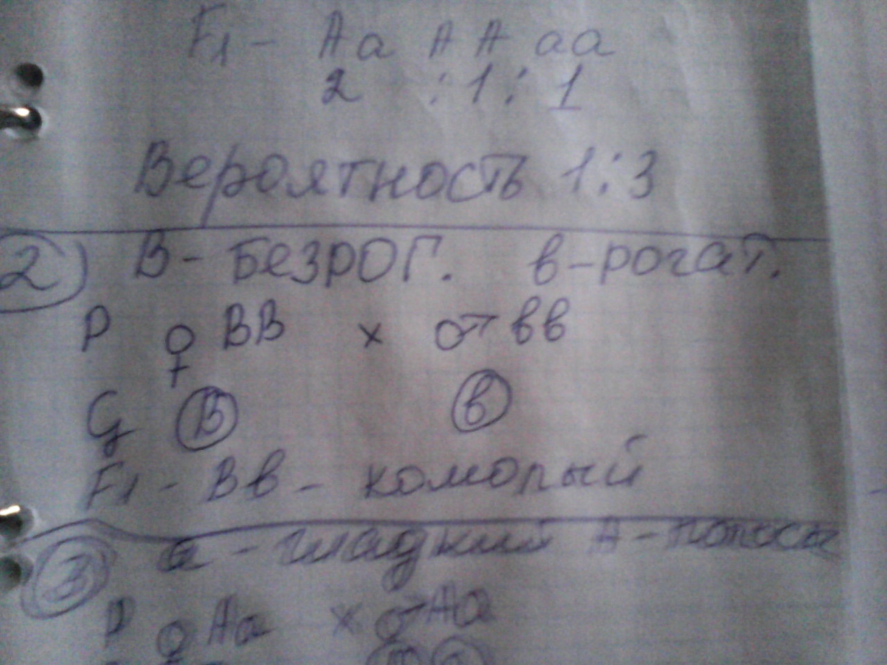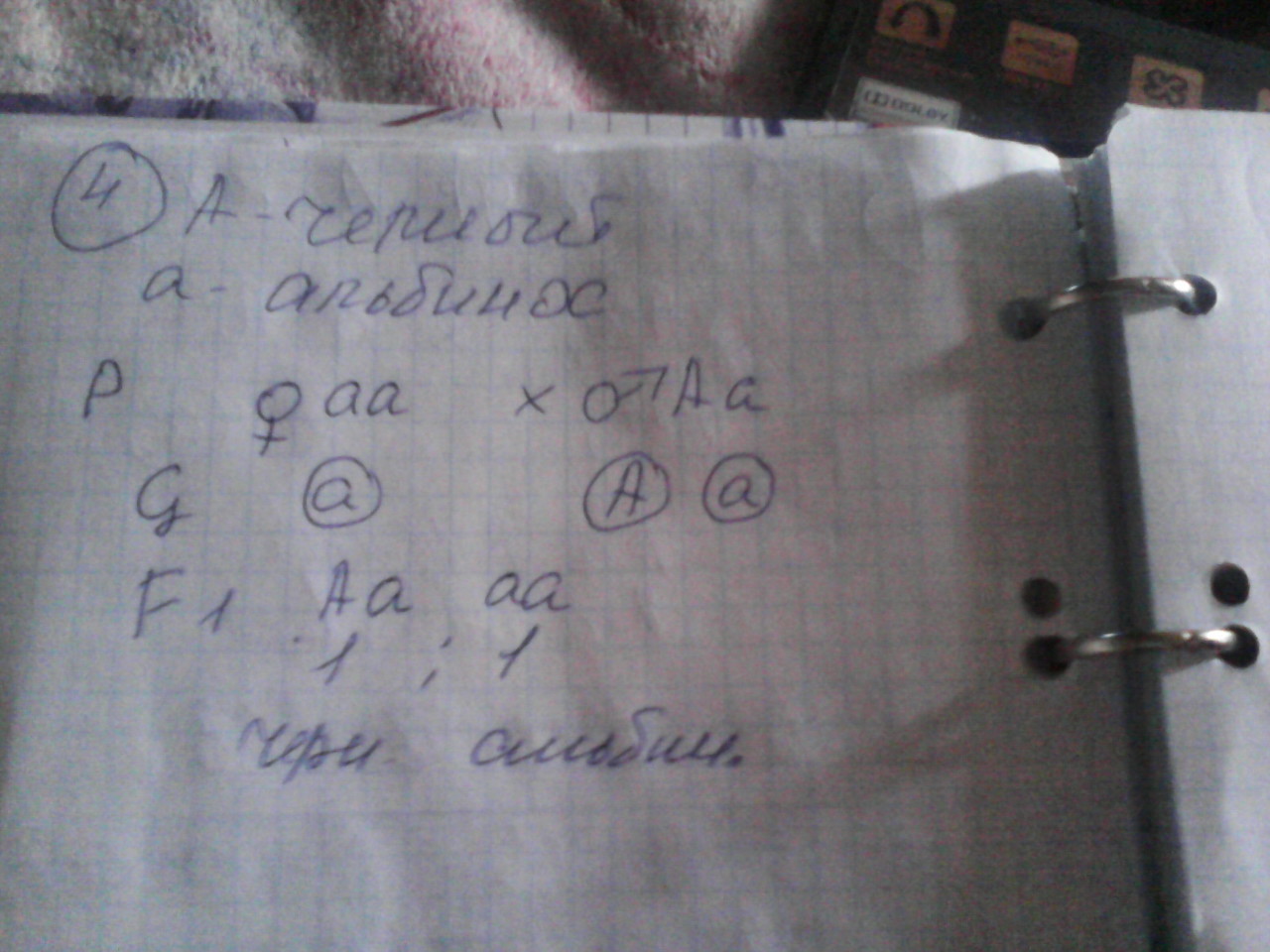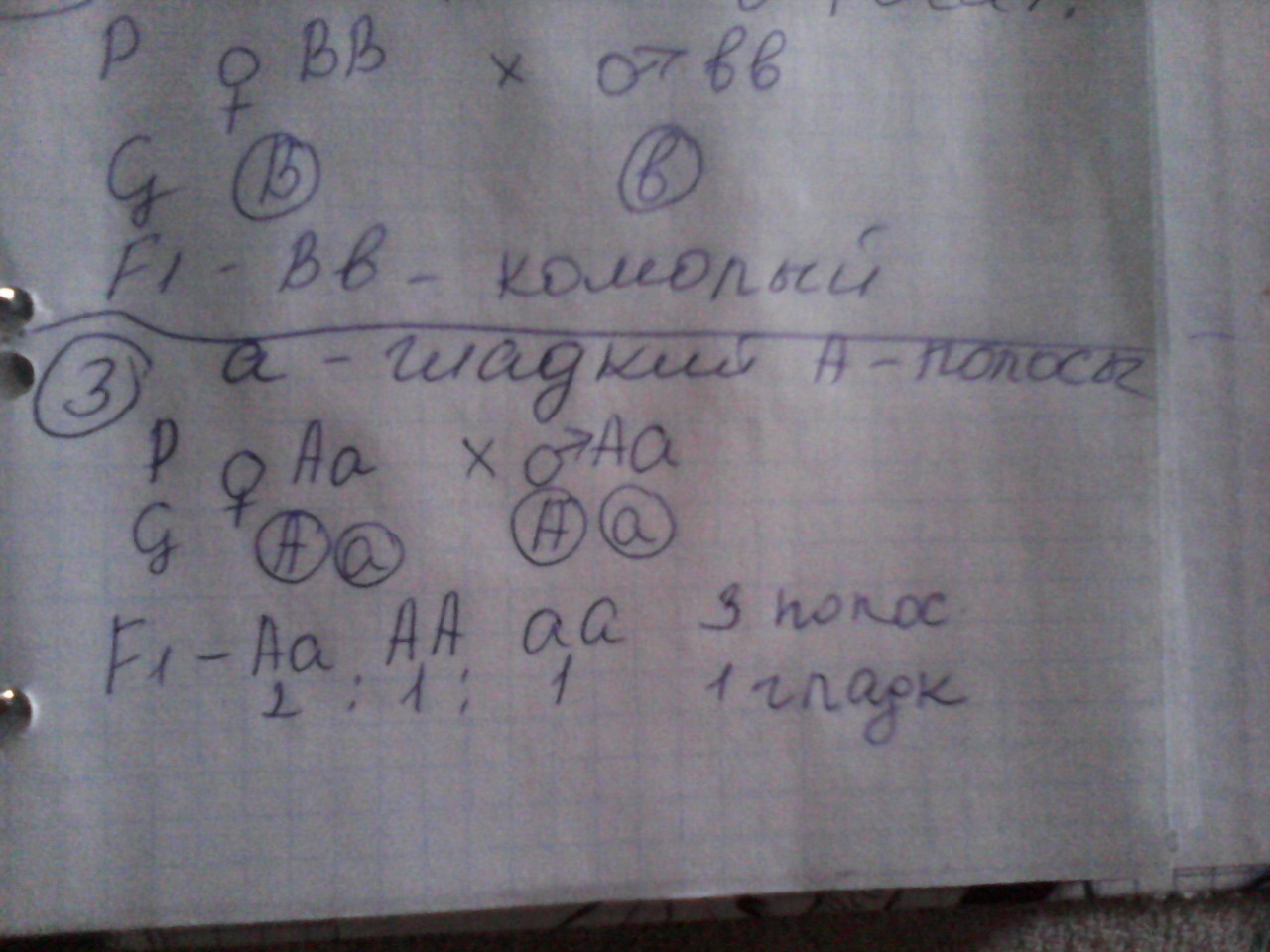 2) отец - аа, мать Аа (т.к. у потомства прорявился рецессивный ген) и дети аа и Аа