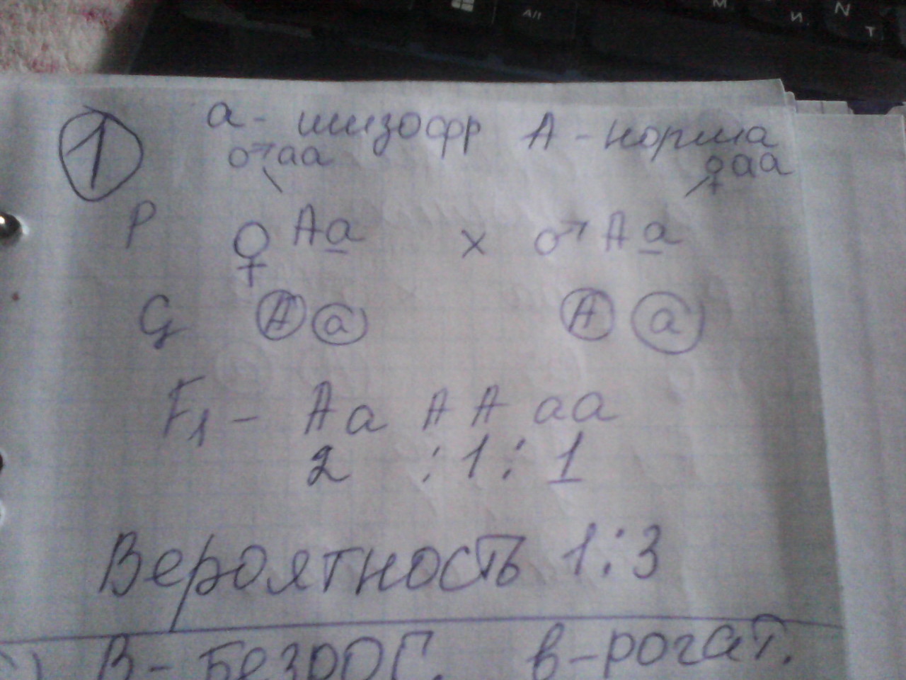 1) генотип женщины - аа, ребенка такой же, а так как рецессивный ген дал о себе знать при скрещивании, значит отец не "чистая линия" - Аа