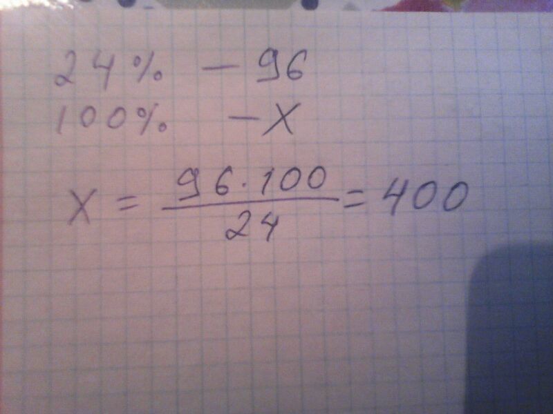 Не очень поняла задание. Если 24% от 96 то (96:100)*24= 23,04