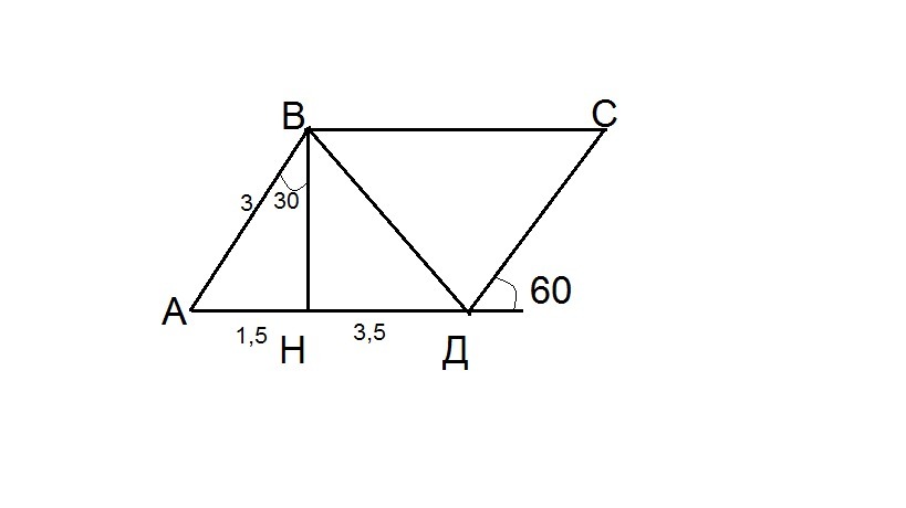 ВД=√(3,5²+(1,5√3)²)=√19.